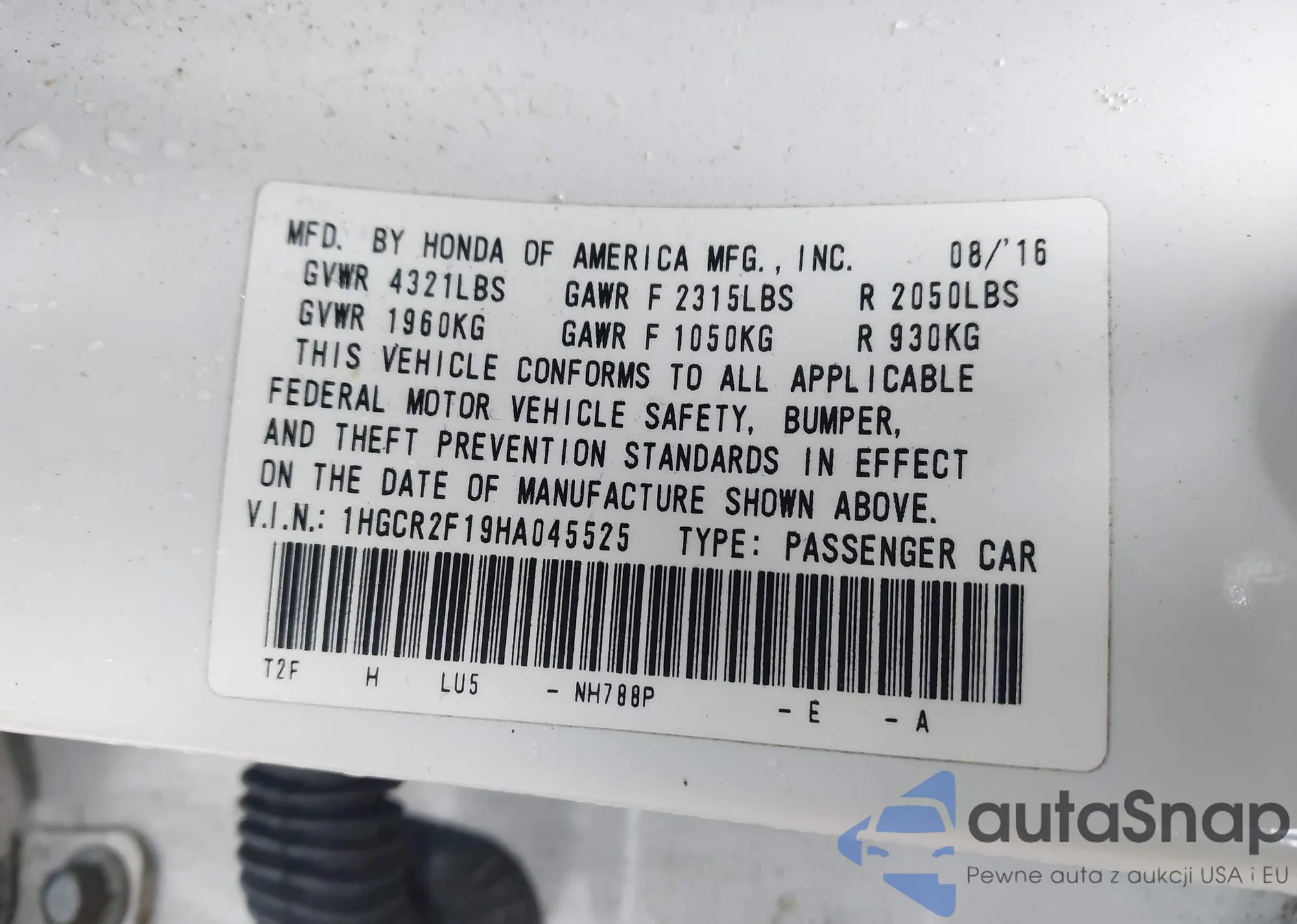 VIN: 1HGCR2F19HA045525