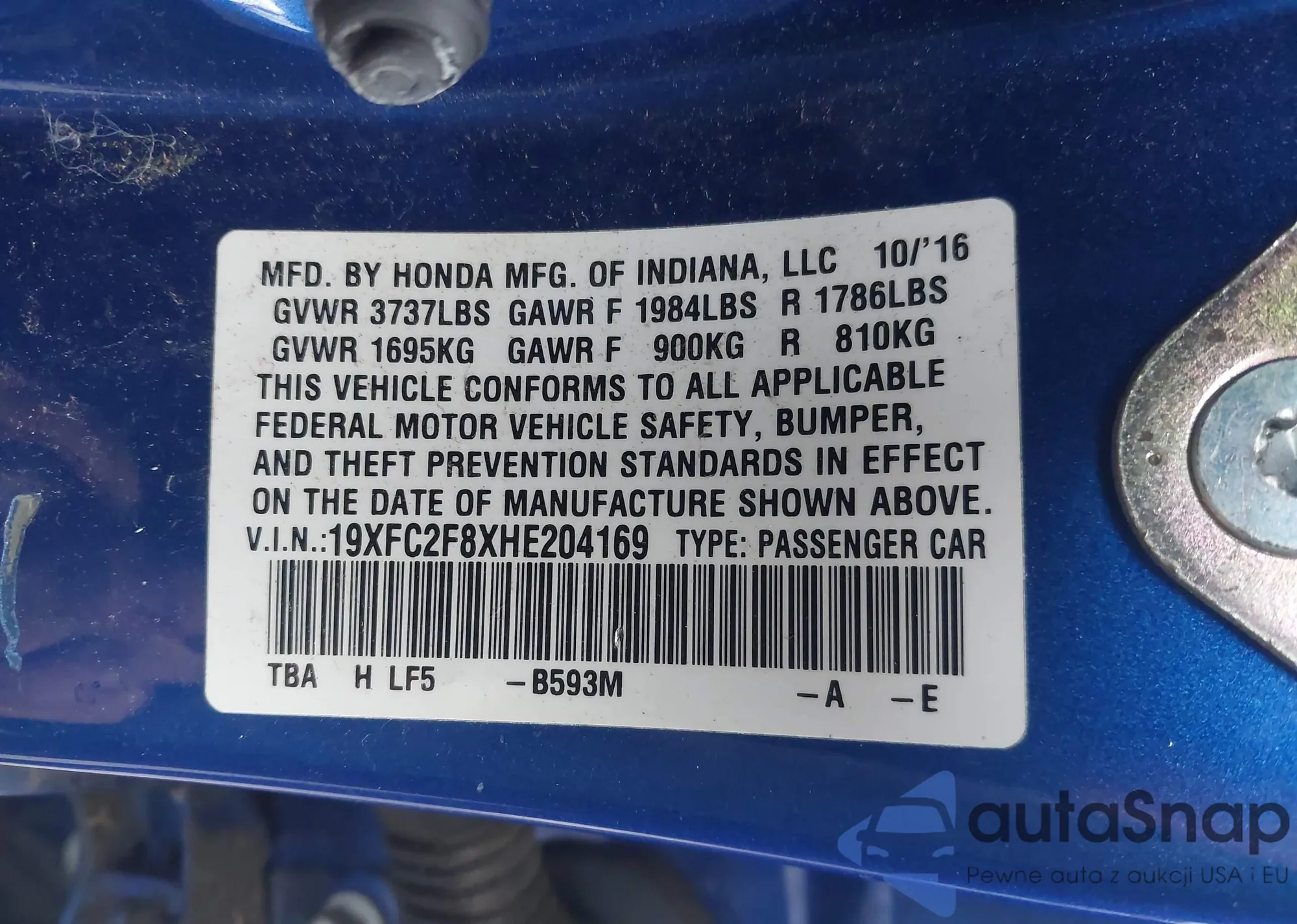 VIN: 19XFC2F8XHE204169