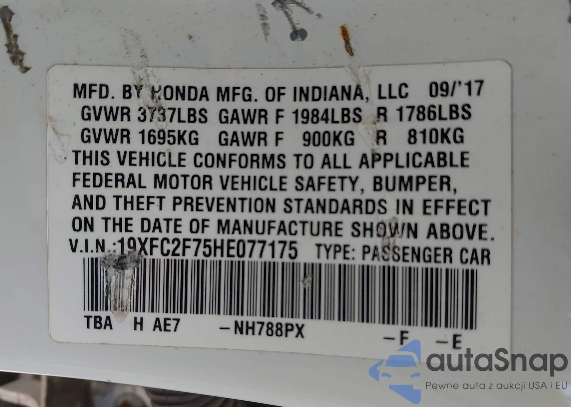 VIN: 19XFC2F75HE077175