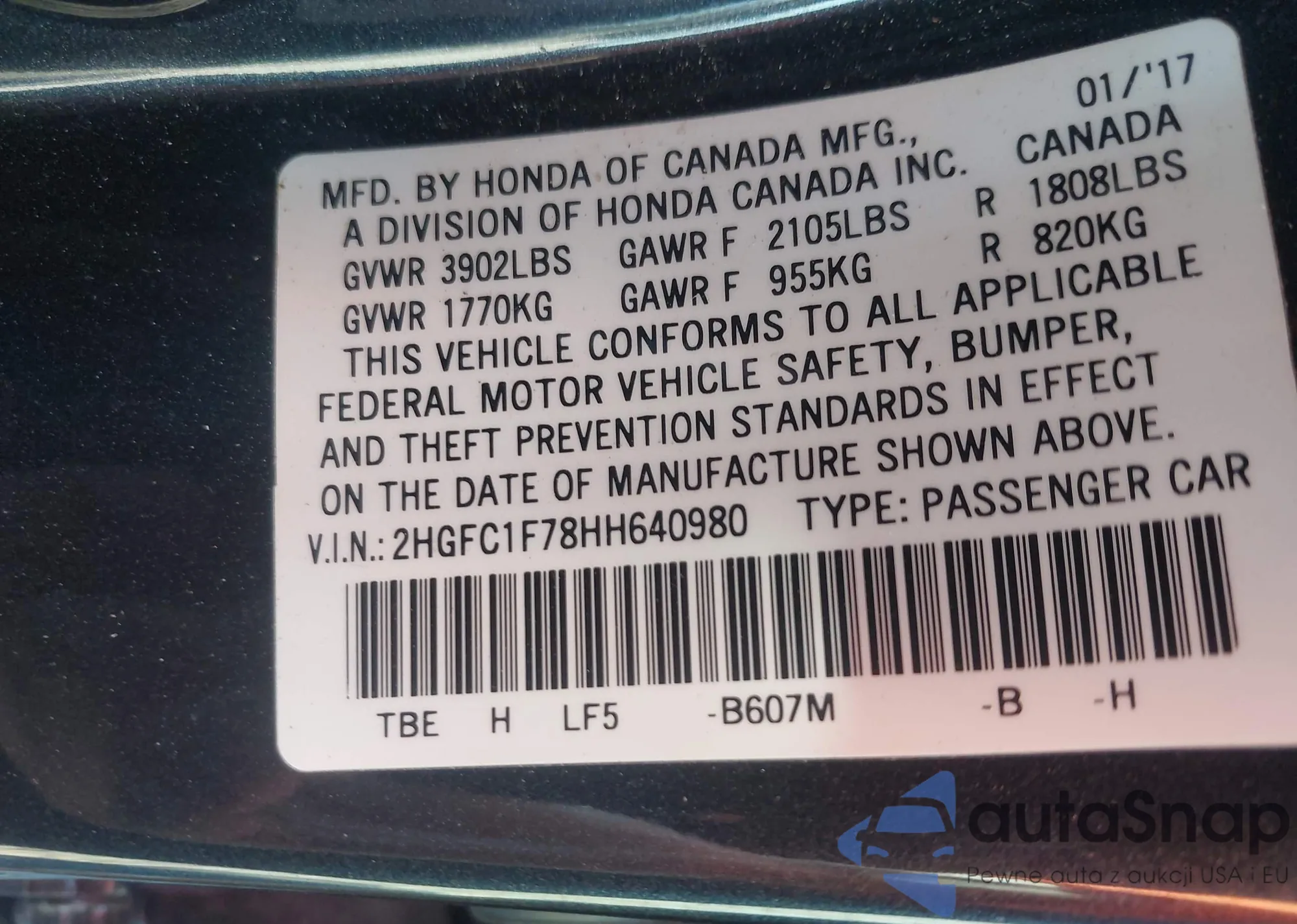 VIN: 2HGFC1F78HH640980