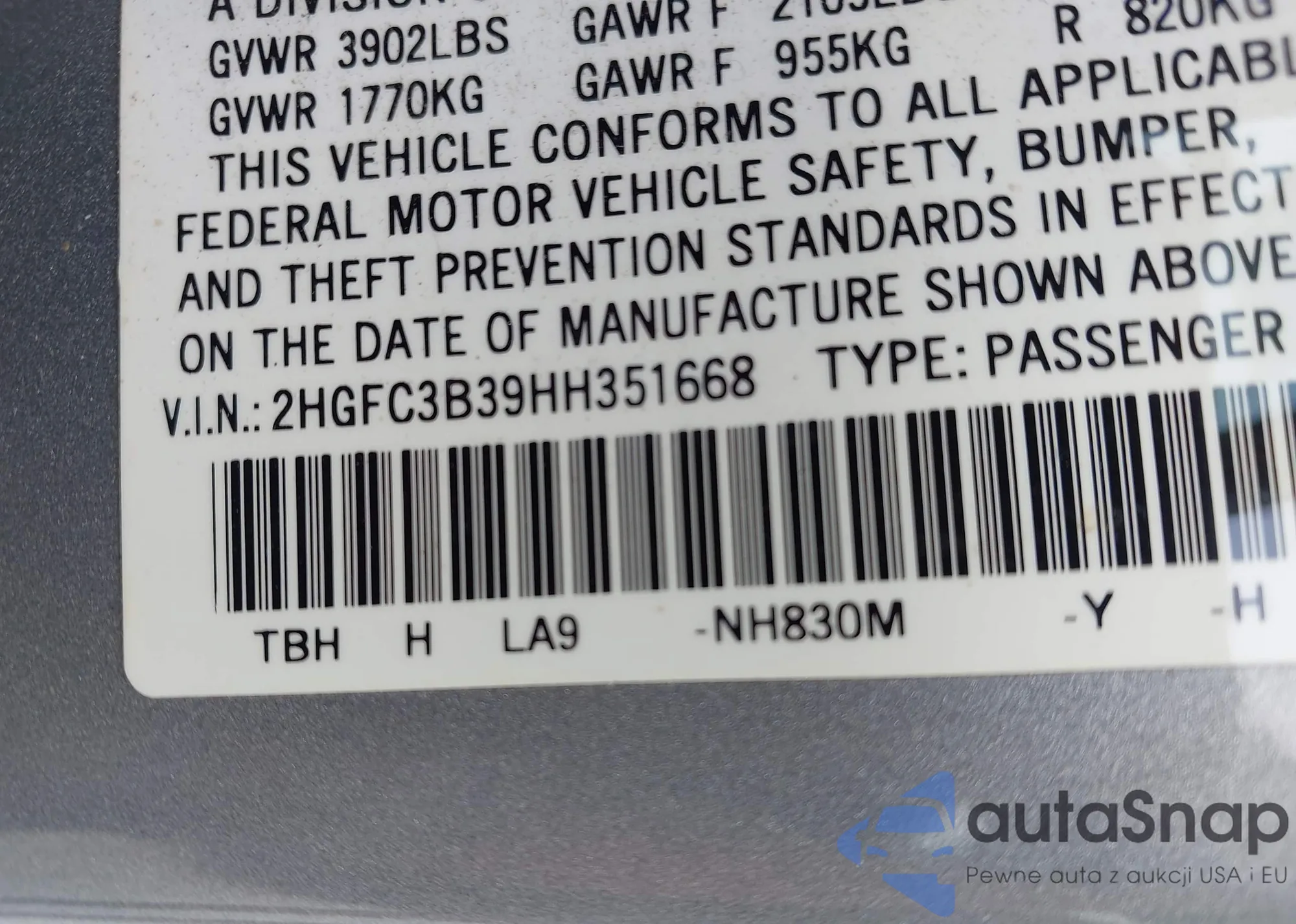 VIN: 2HGFC3B39HH351668