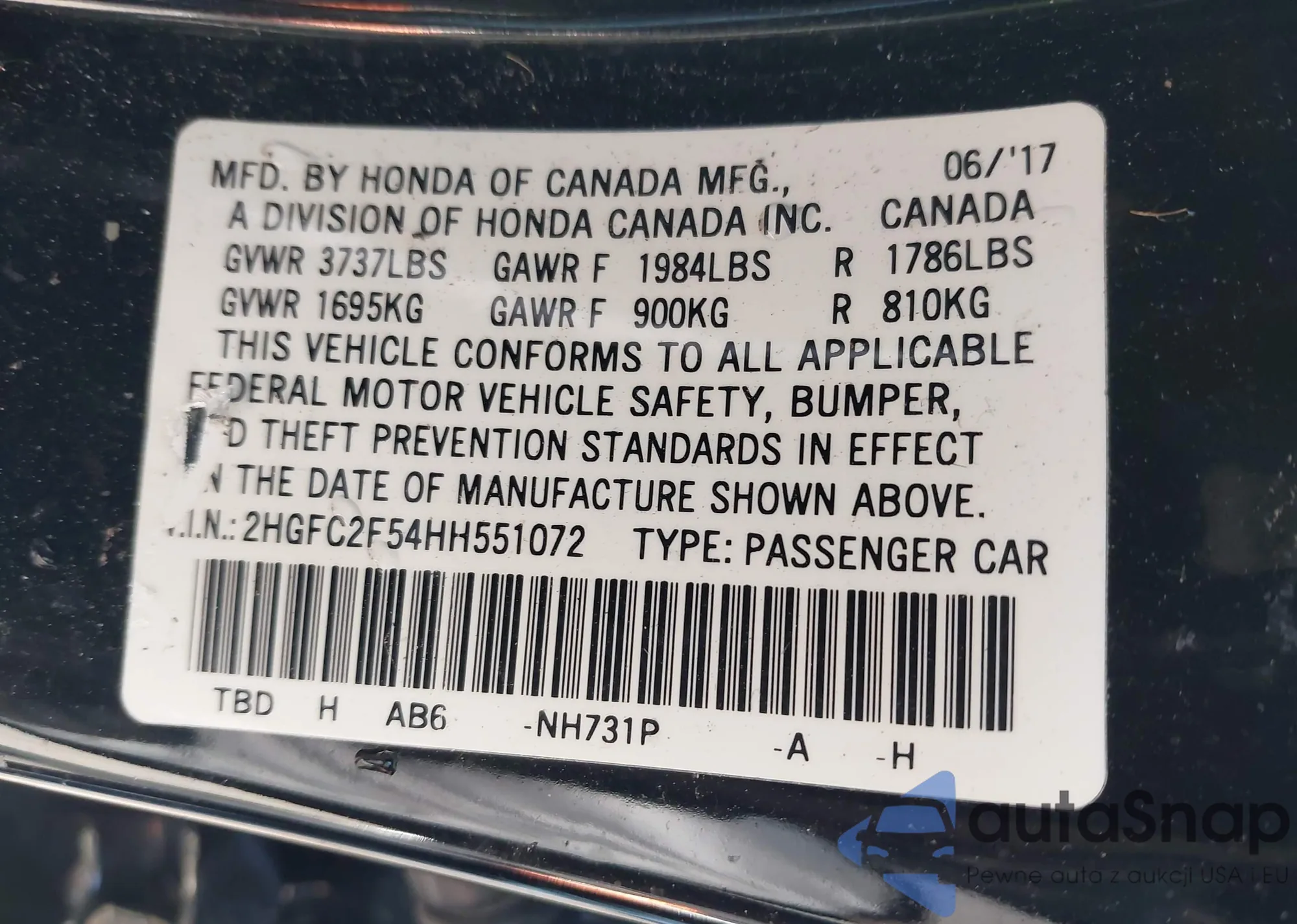 VIN: 2HGFC2F54HH551072