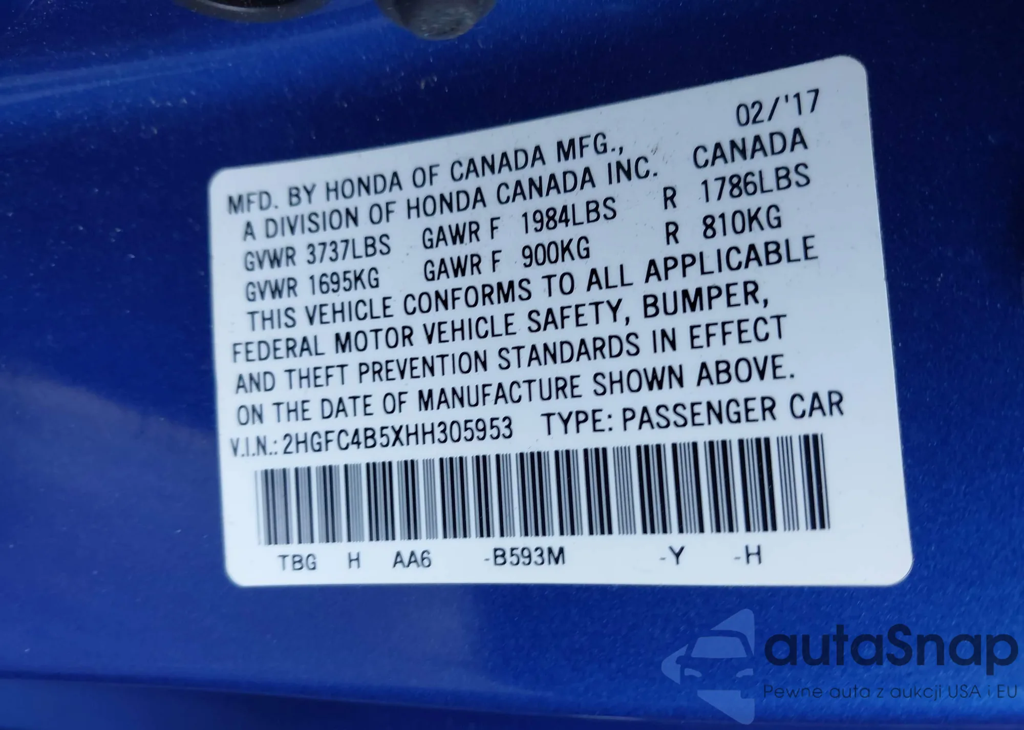 VIN: 2HGFC4B5XHH305953