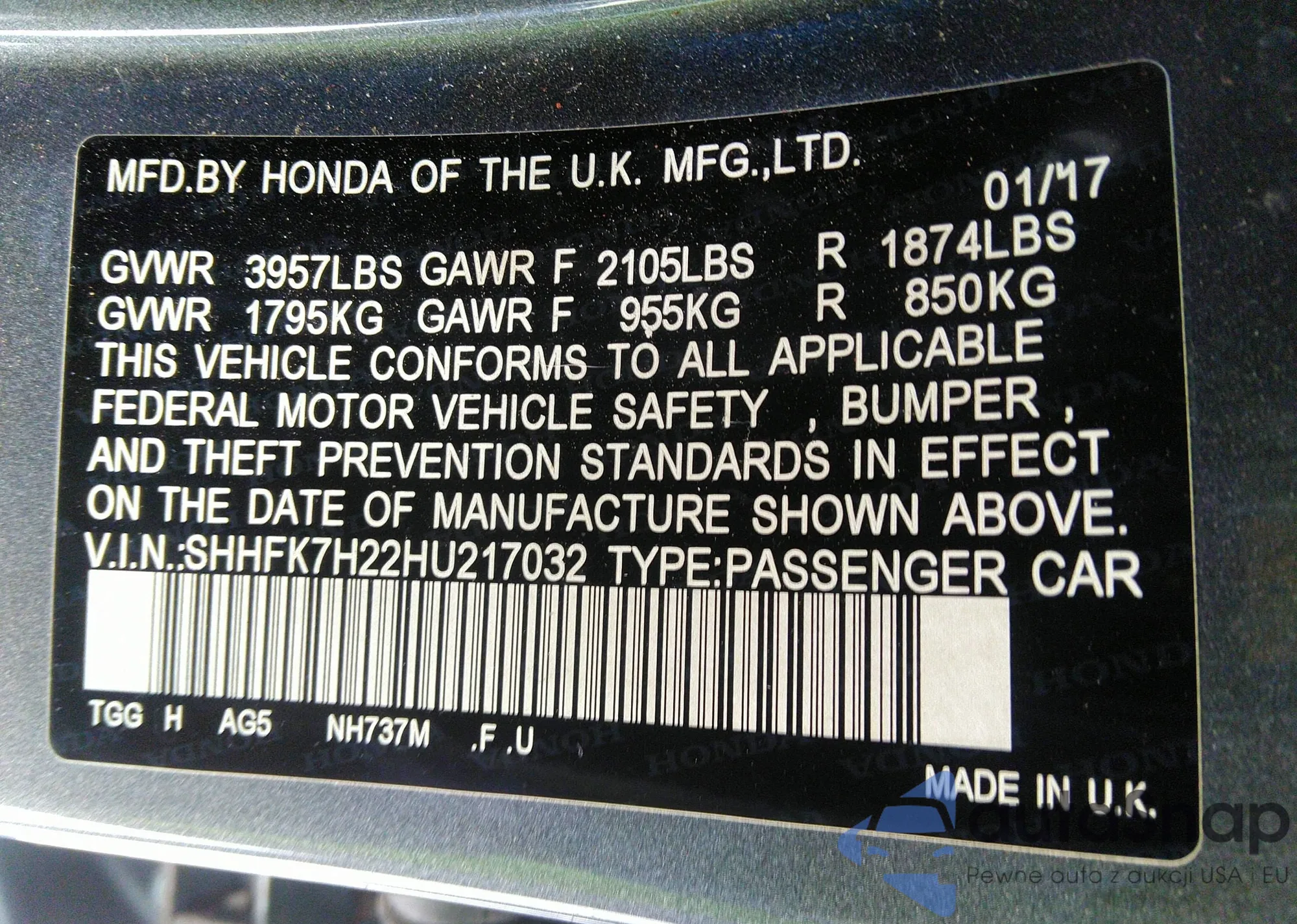 VIN: SHHFK7H22HU217032