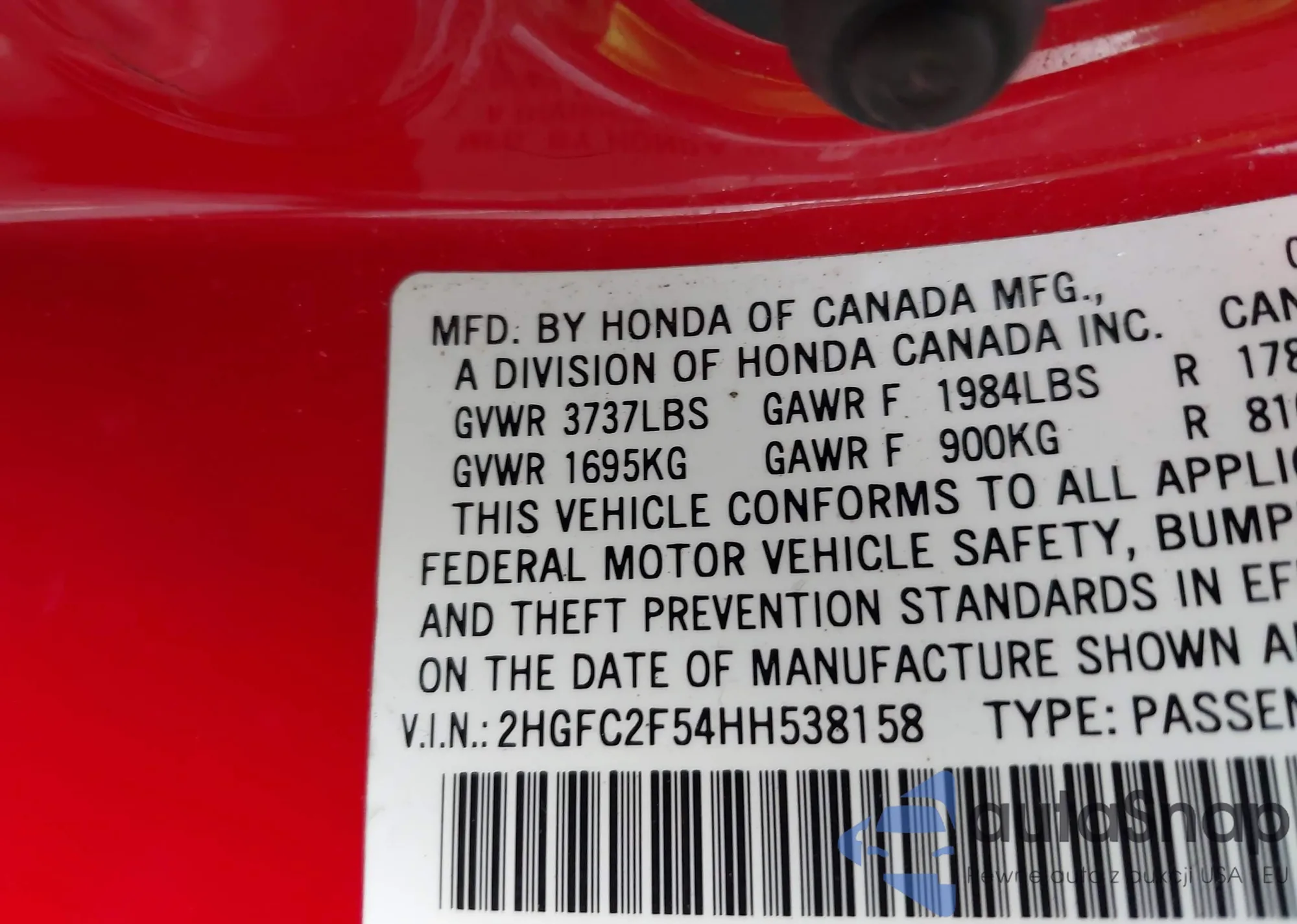 VIN: 2HGFC2F54HH538158