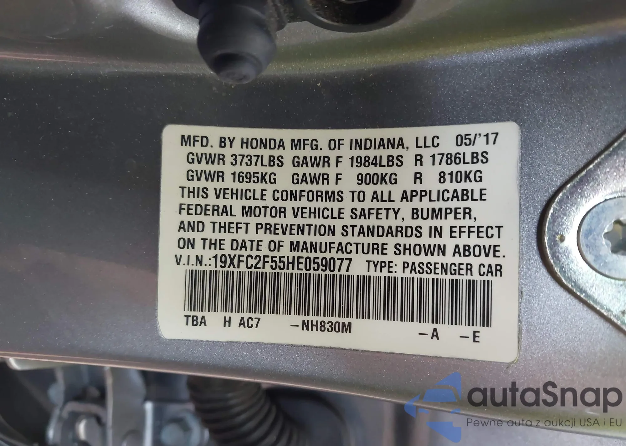 VIN: 19XFC2F55HE059077