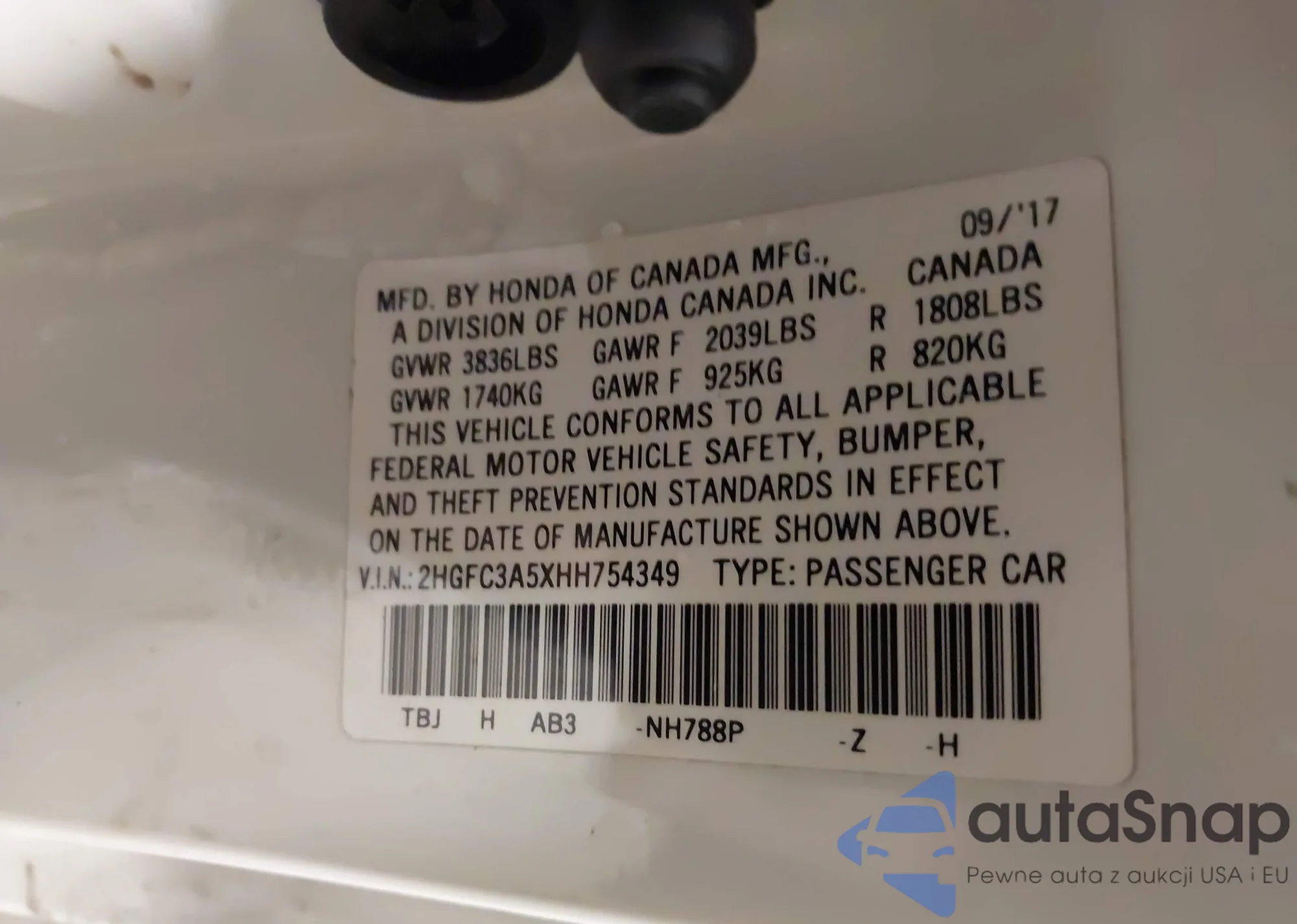 VIN: 2HGFC3A5XHH754349