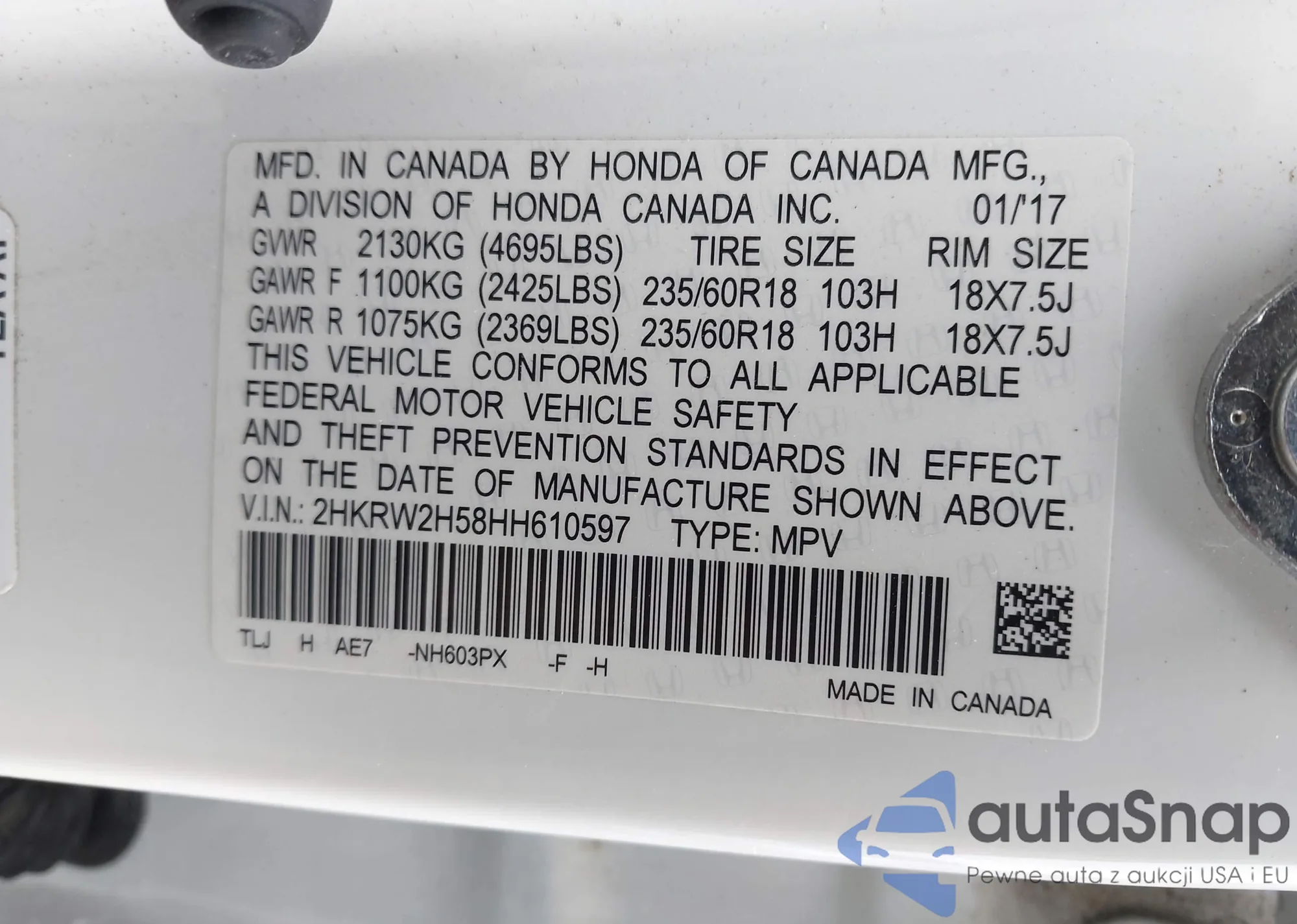 VIN: 2HKRW2H58HH610597