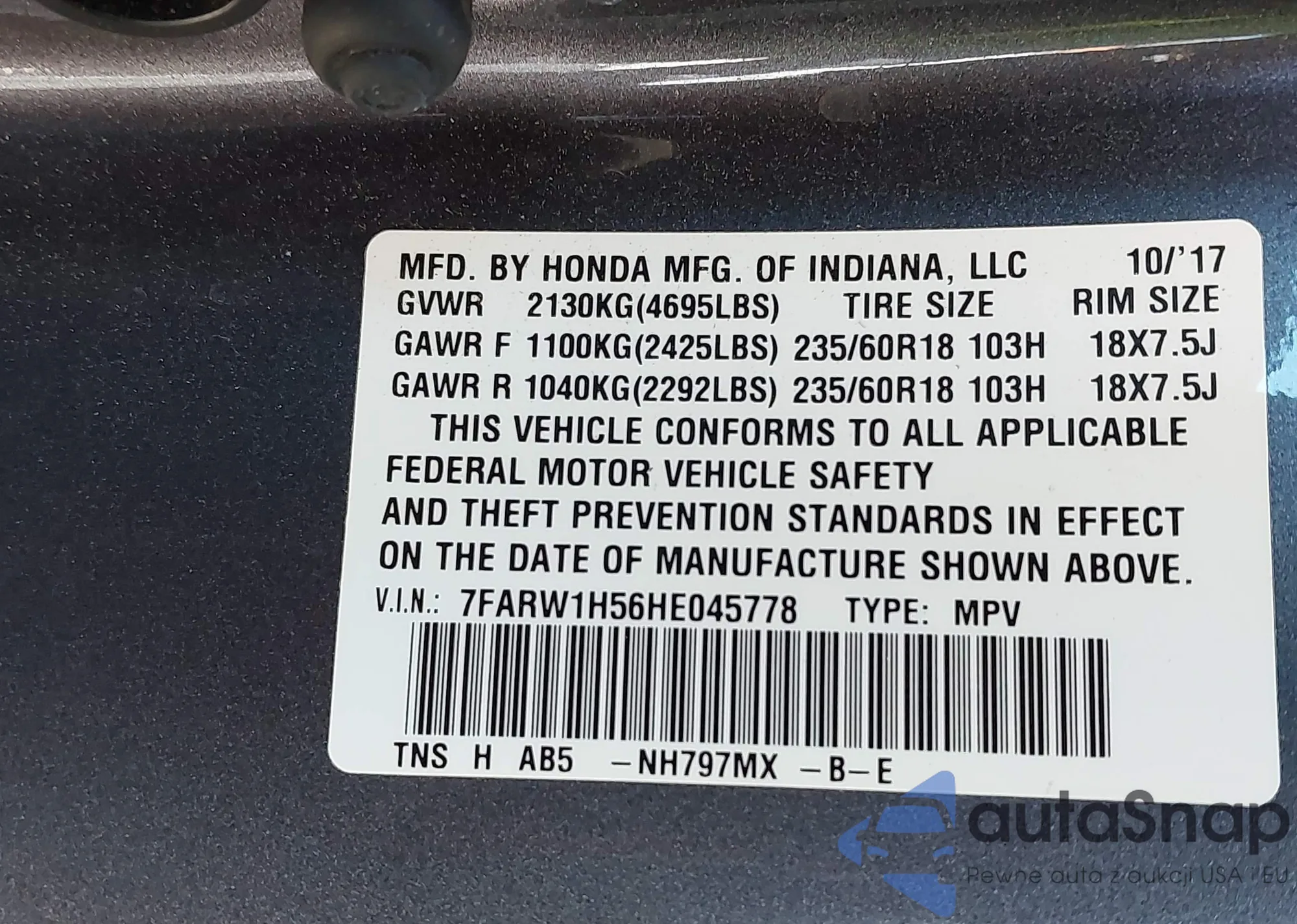 VIN: 7FARW1H56HE045778