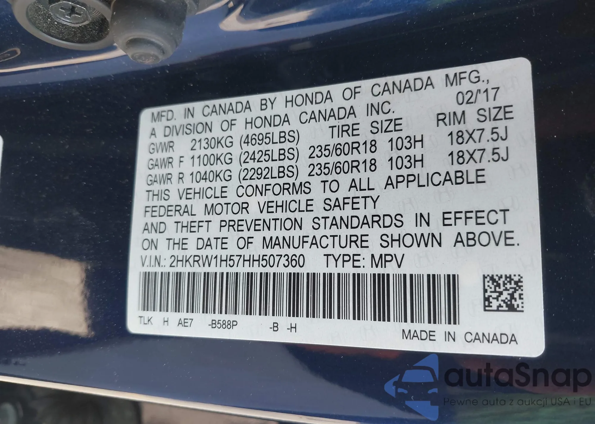 VIN: 2HKRW1H57HH507360