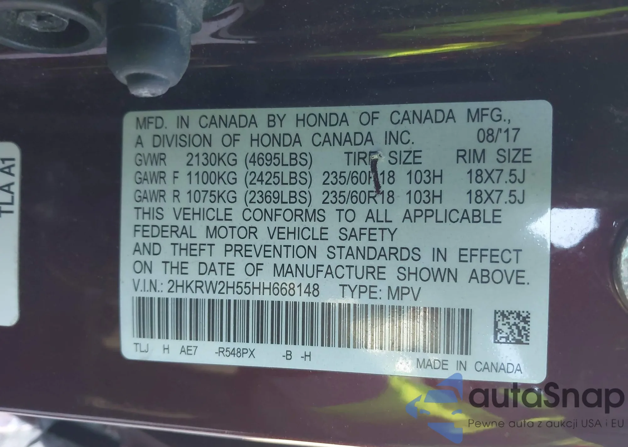 VIN: 2HKRW2H55HH668148