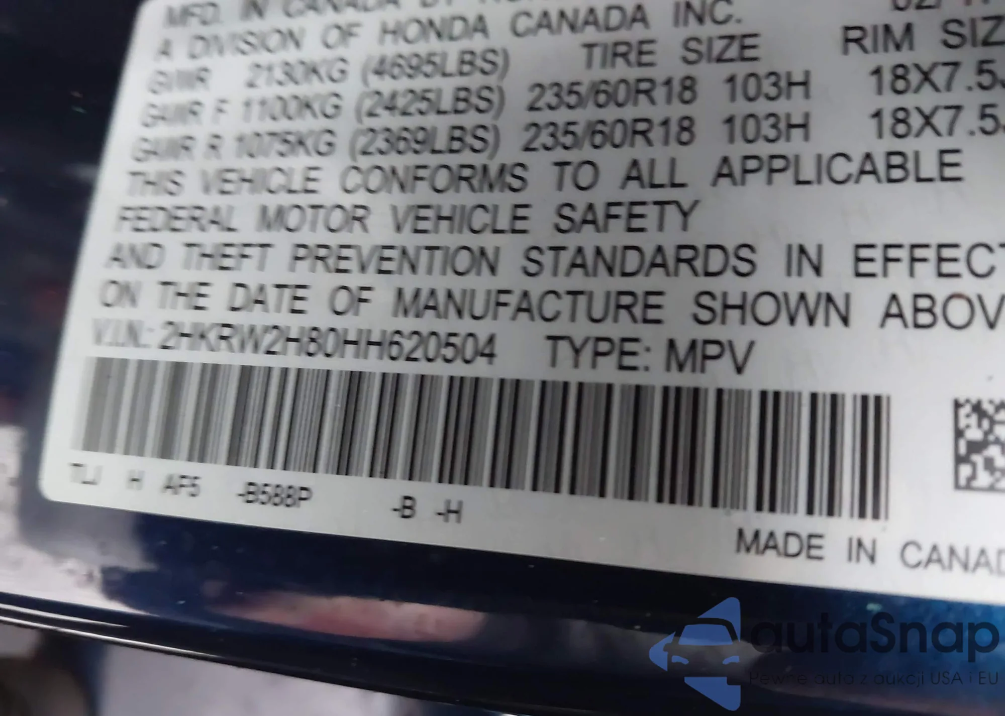 VIN: 2HKRW2H80HH620504