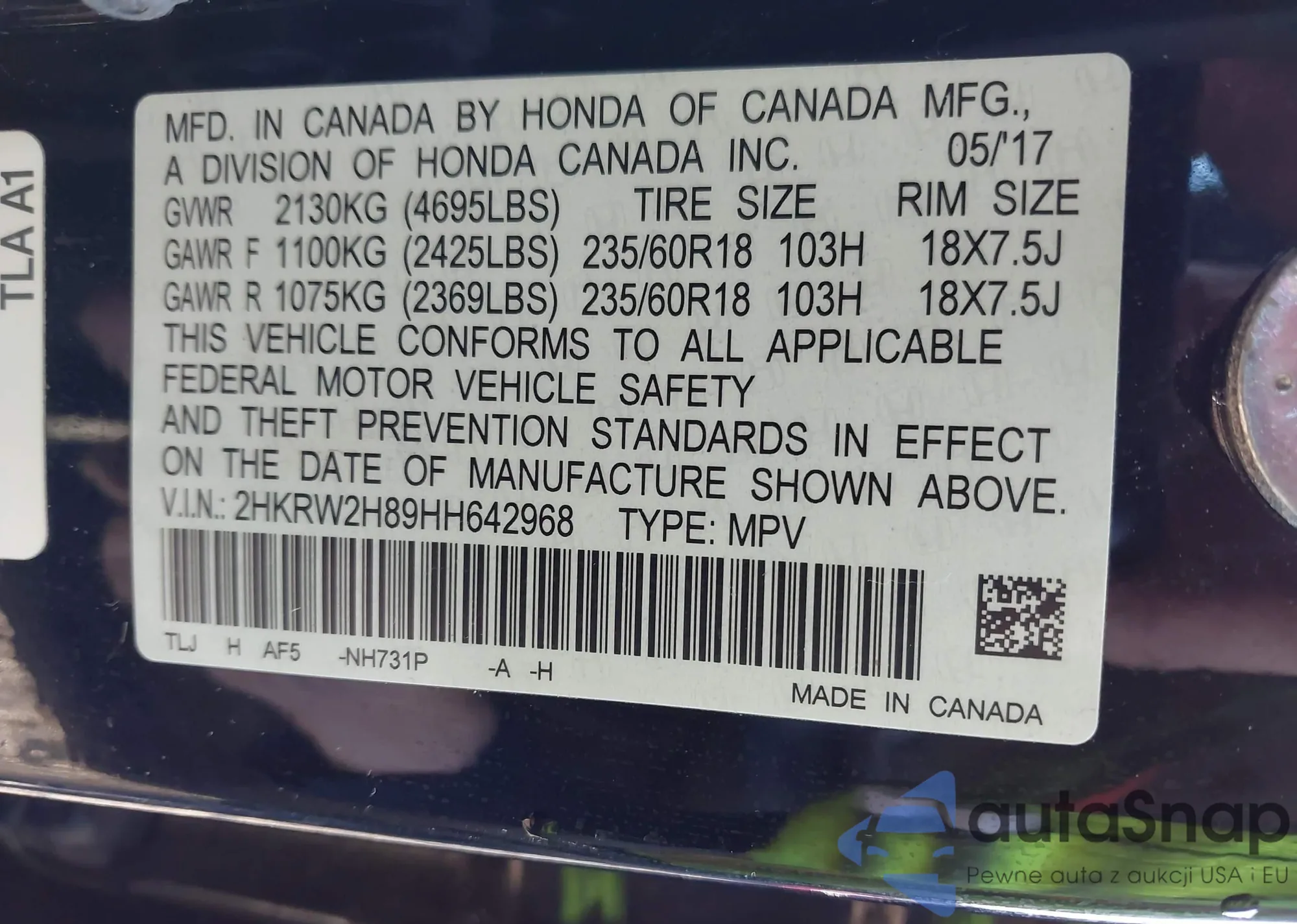 VIN: 2HKRW2H89HH642968