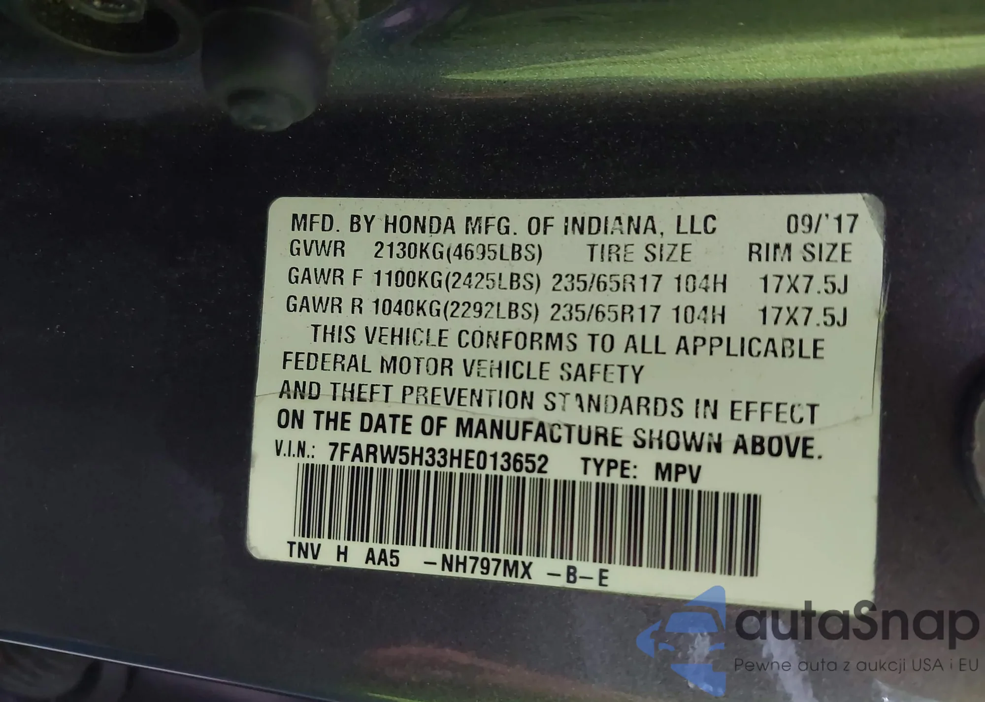VIN: 7FARW5H33HE013652