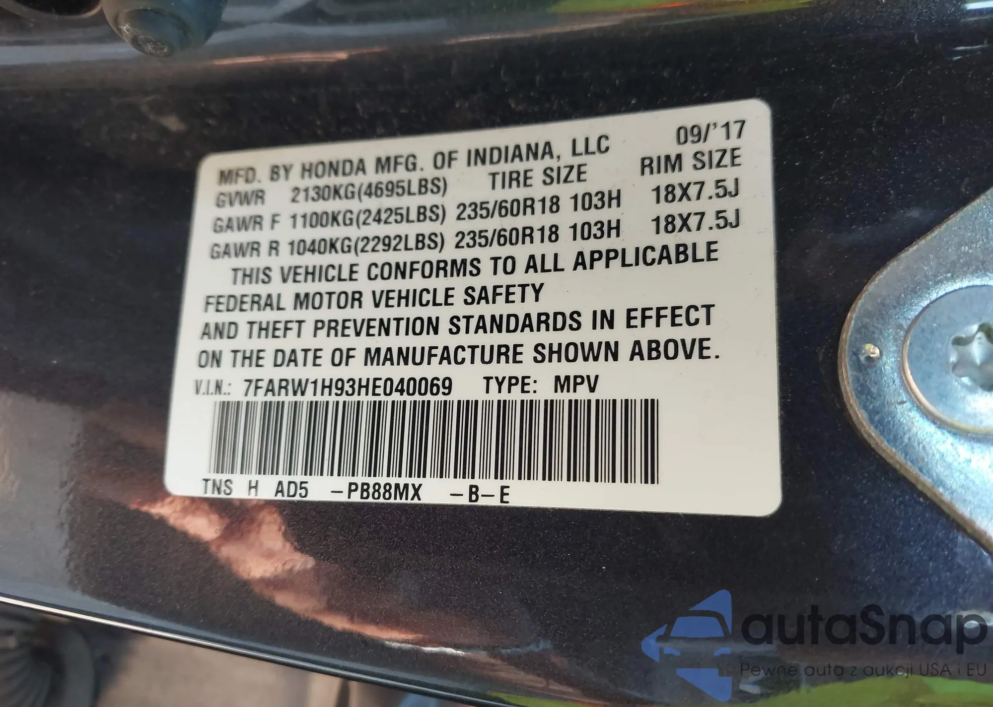 VIN: 7FARW1H93HE040069