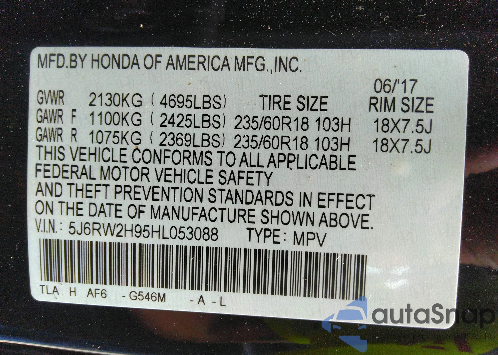 VIN: 5J6RW2H95HL053088