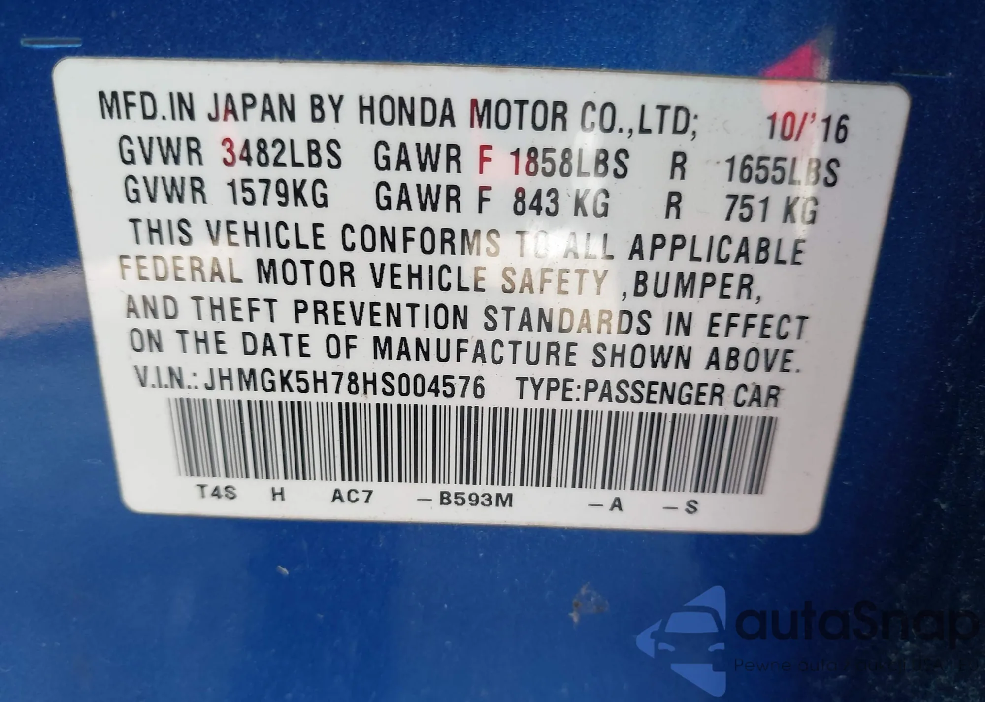 VIN: JHMGK5H78HS004576