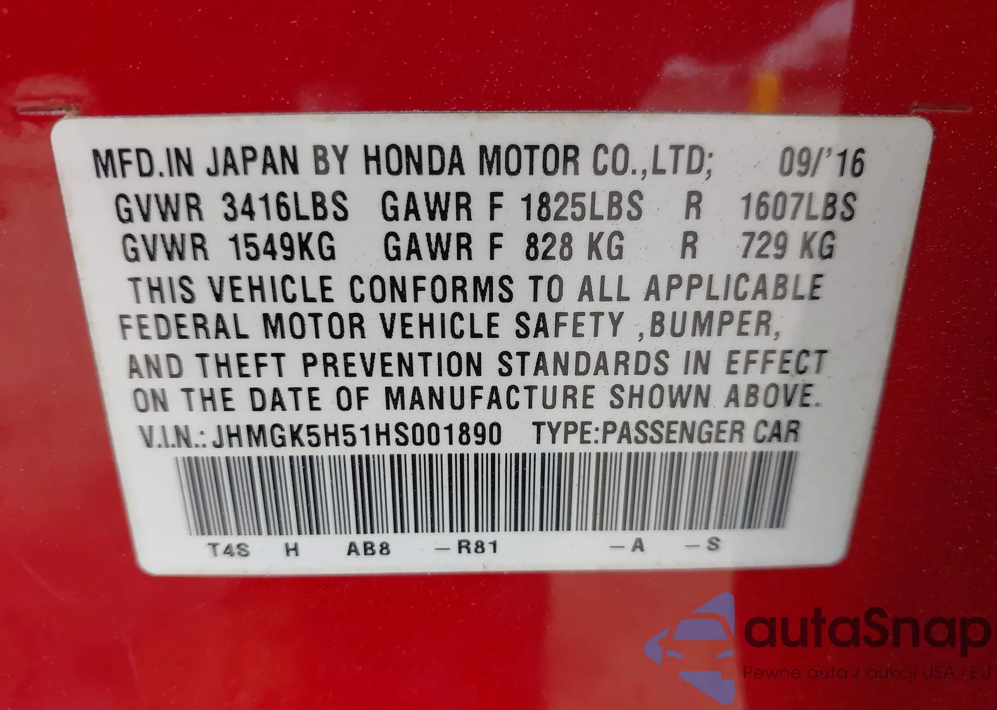 VIN: JHMGK5H51HS001890