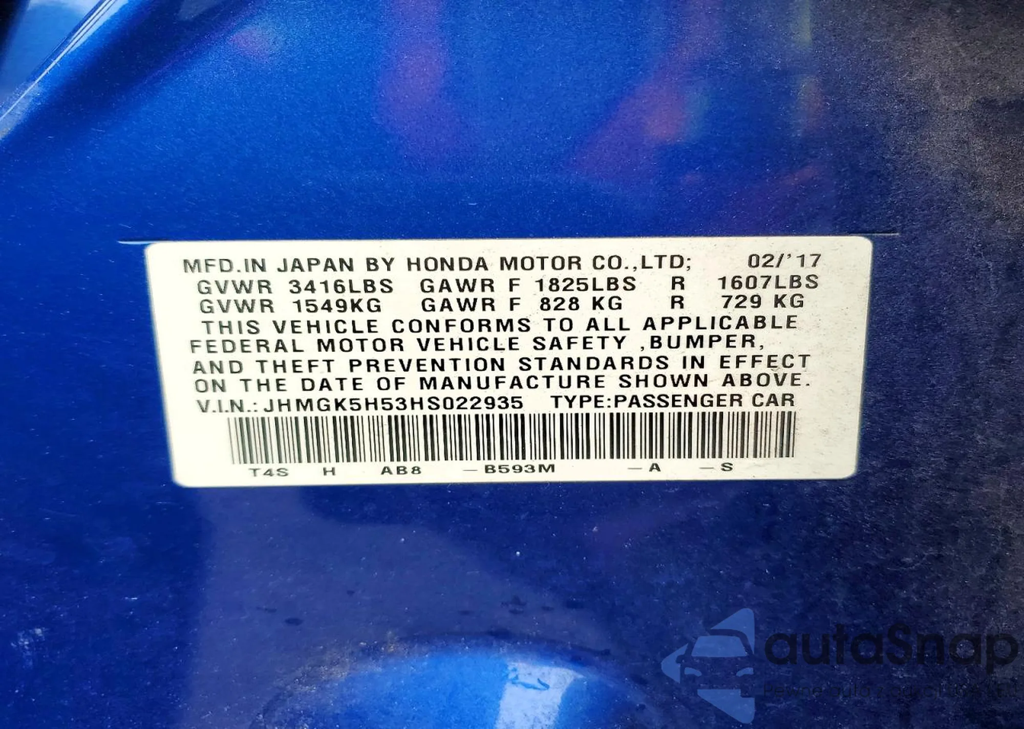 VIN: JHMGK5H53HS022935