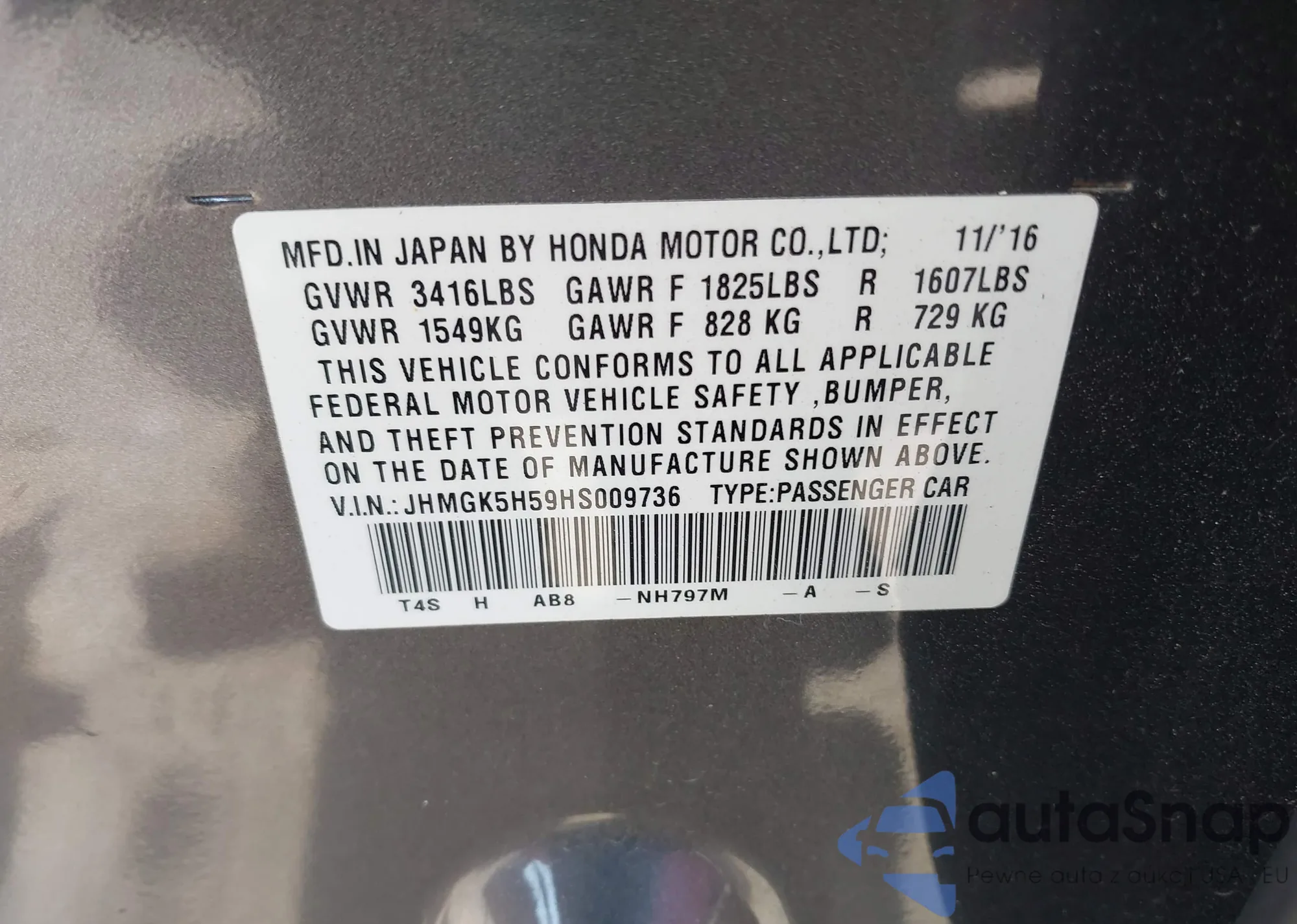 VIN: JHMGK5H59HS009736