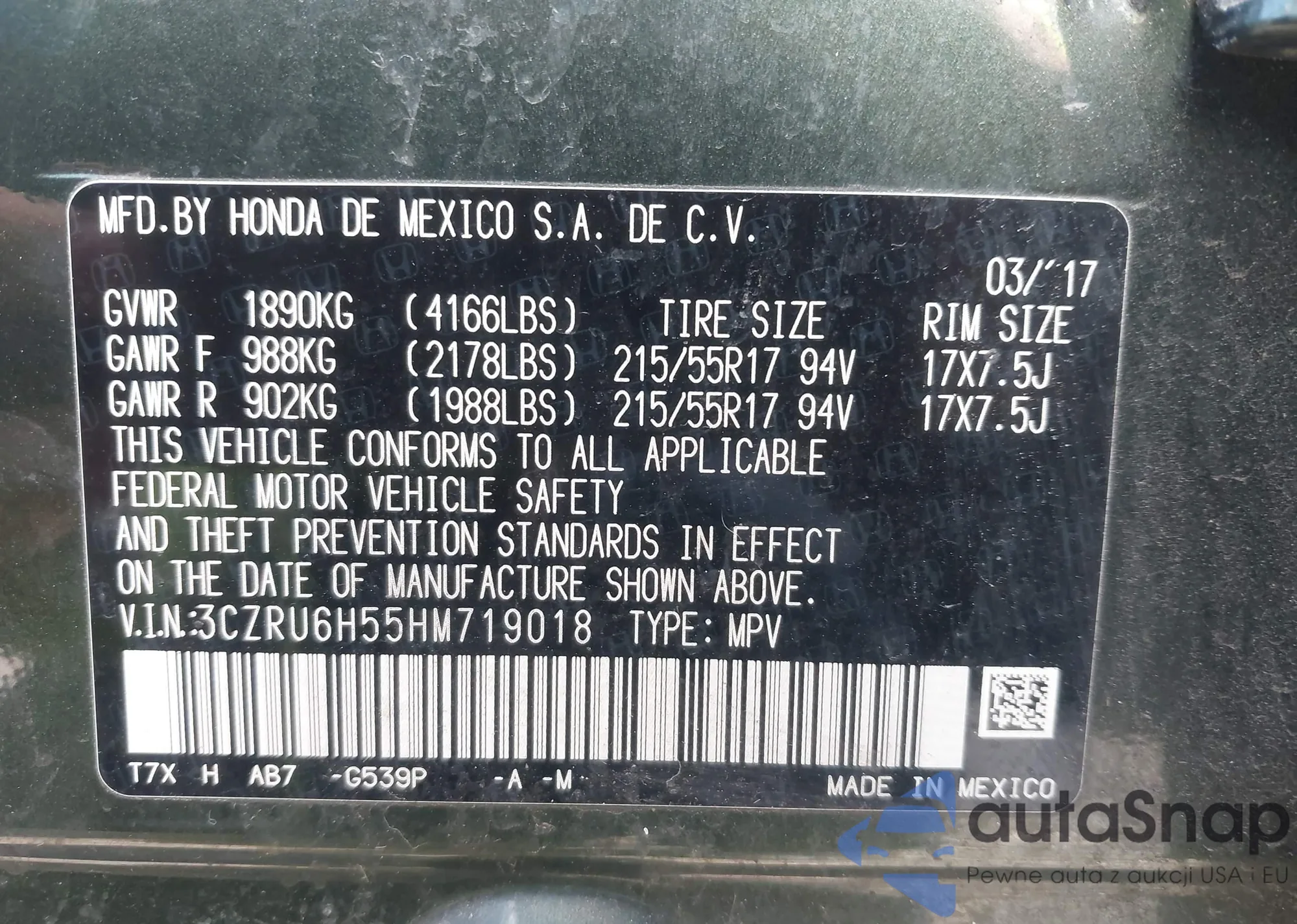 • VIN: 3CZRU6H55HM719018