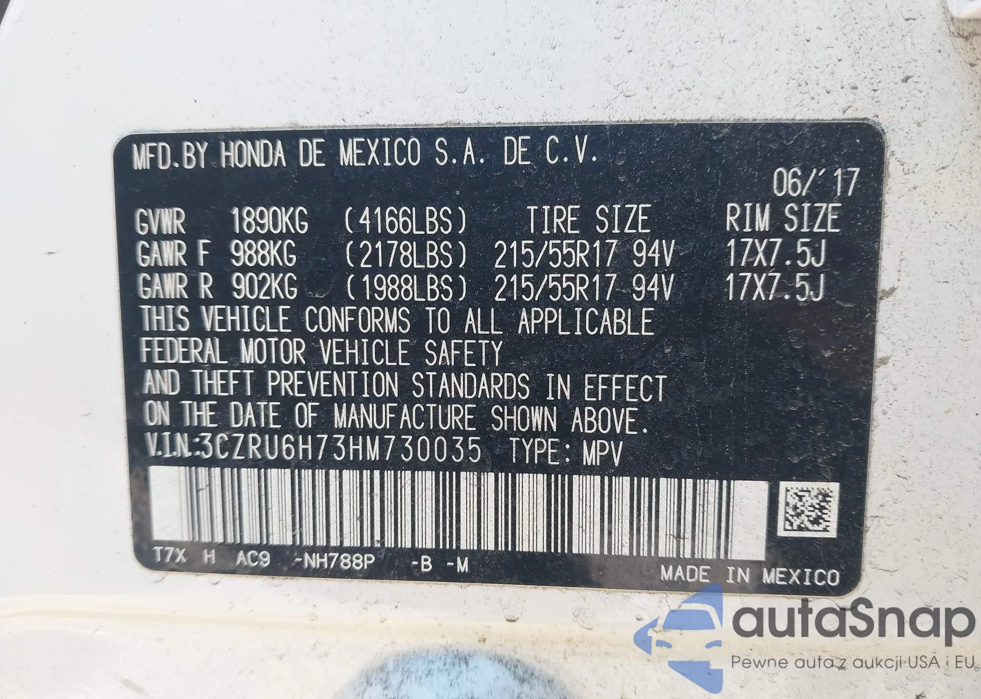 VIN: 3CZRU6H73HM730035