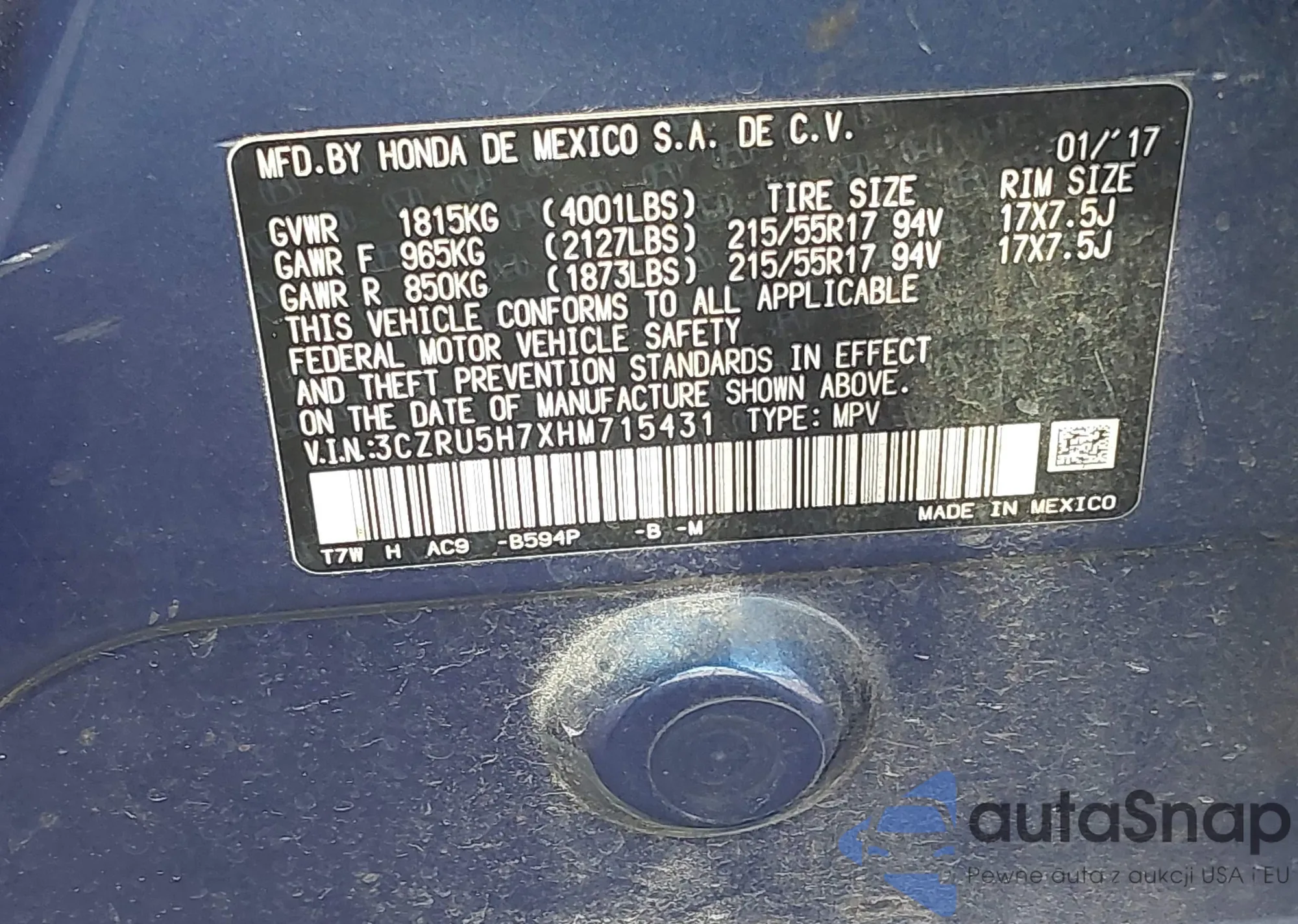 • VIN: 3CZRU5H7XHM715431