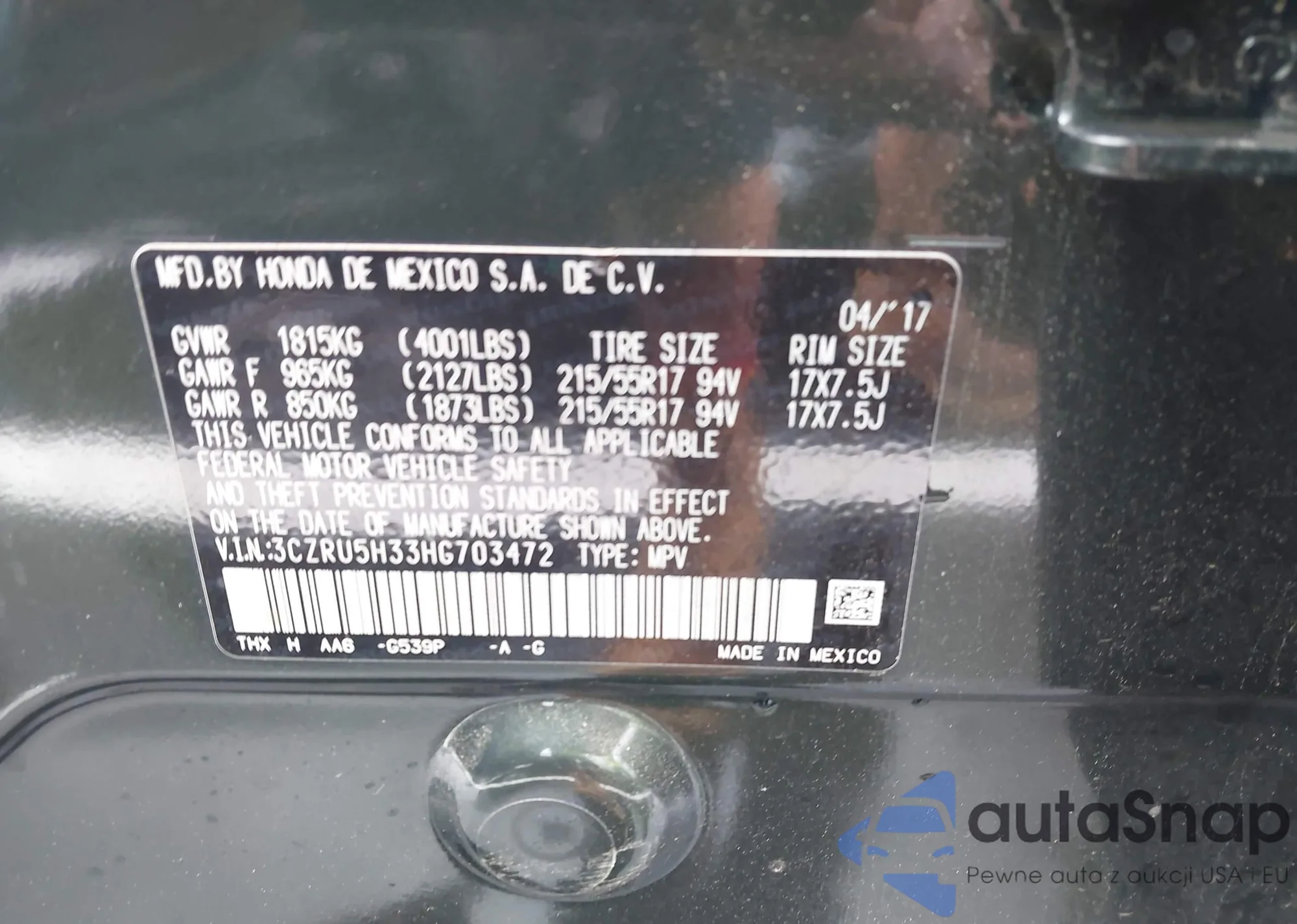 VIN: 3CZRU5H33HG703472