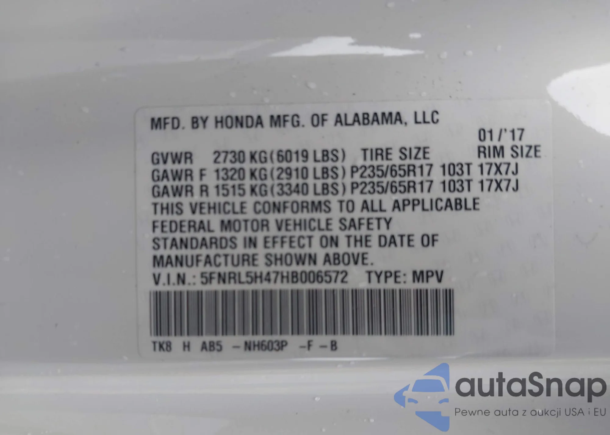 VIN: 5FNRL5H47HB006572