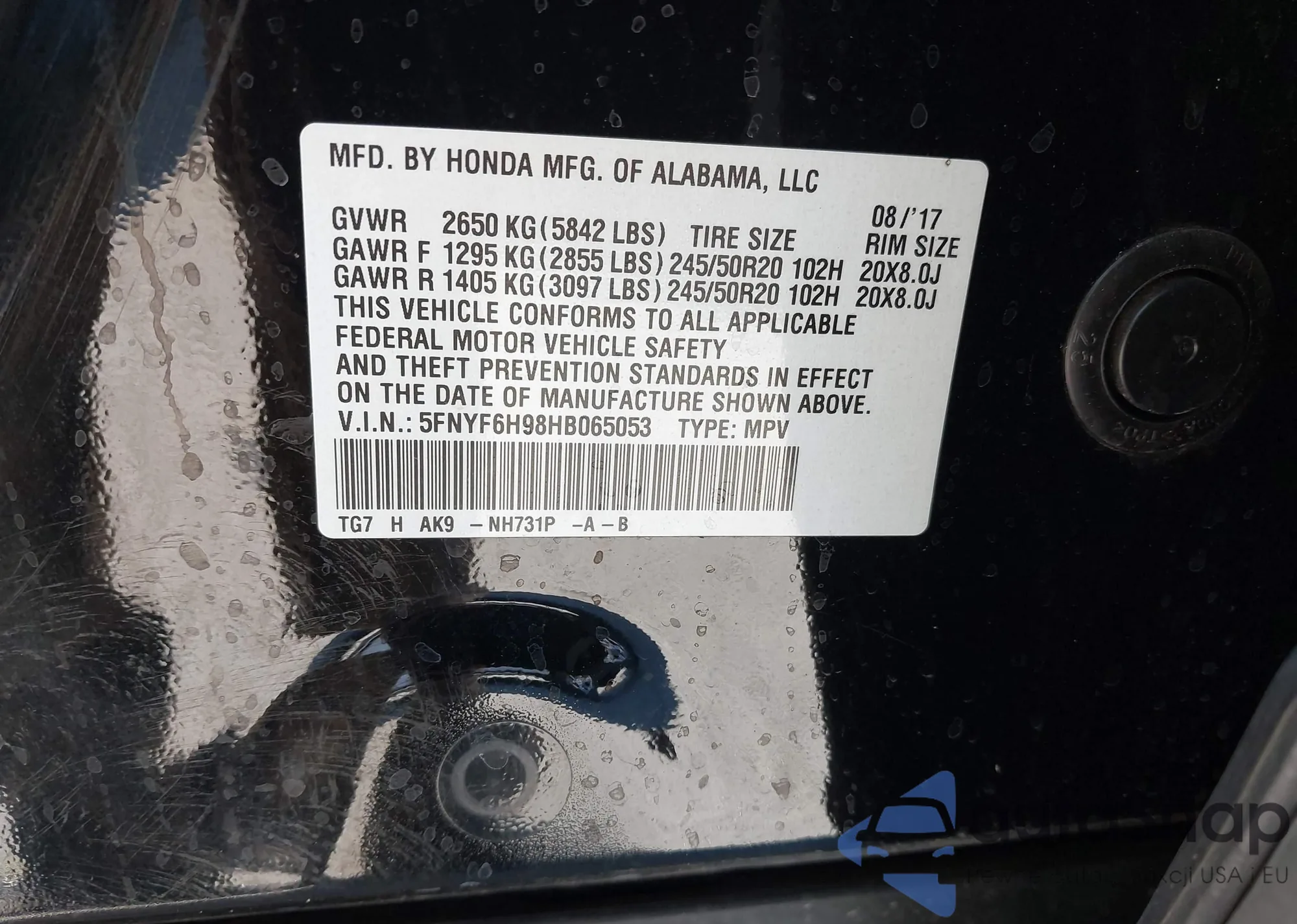 • VIN: 5FNYF6H98HB065053