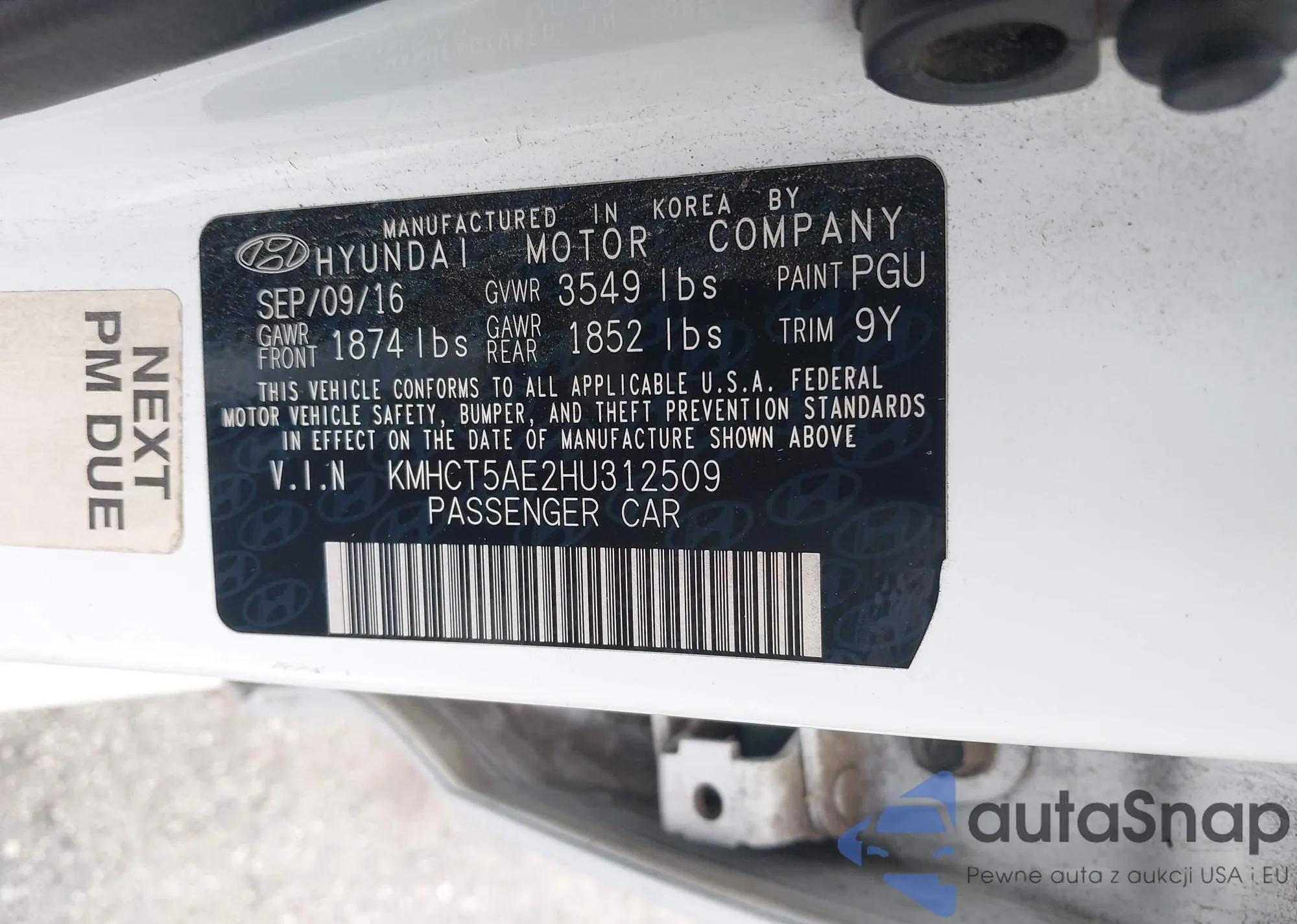 • VIN: KMHCT5AE2HU312509
