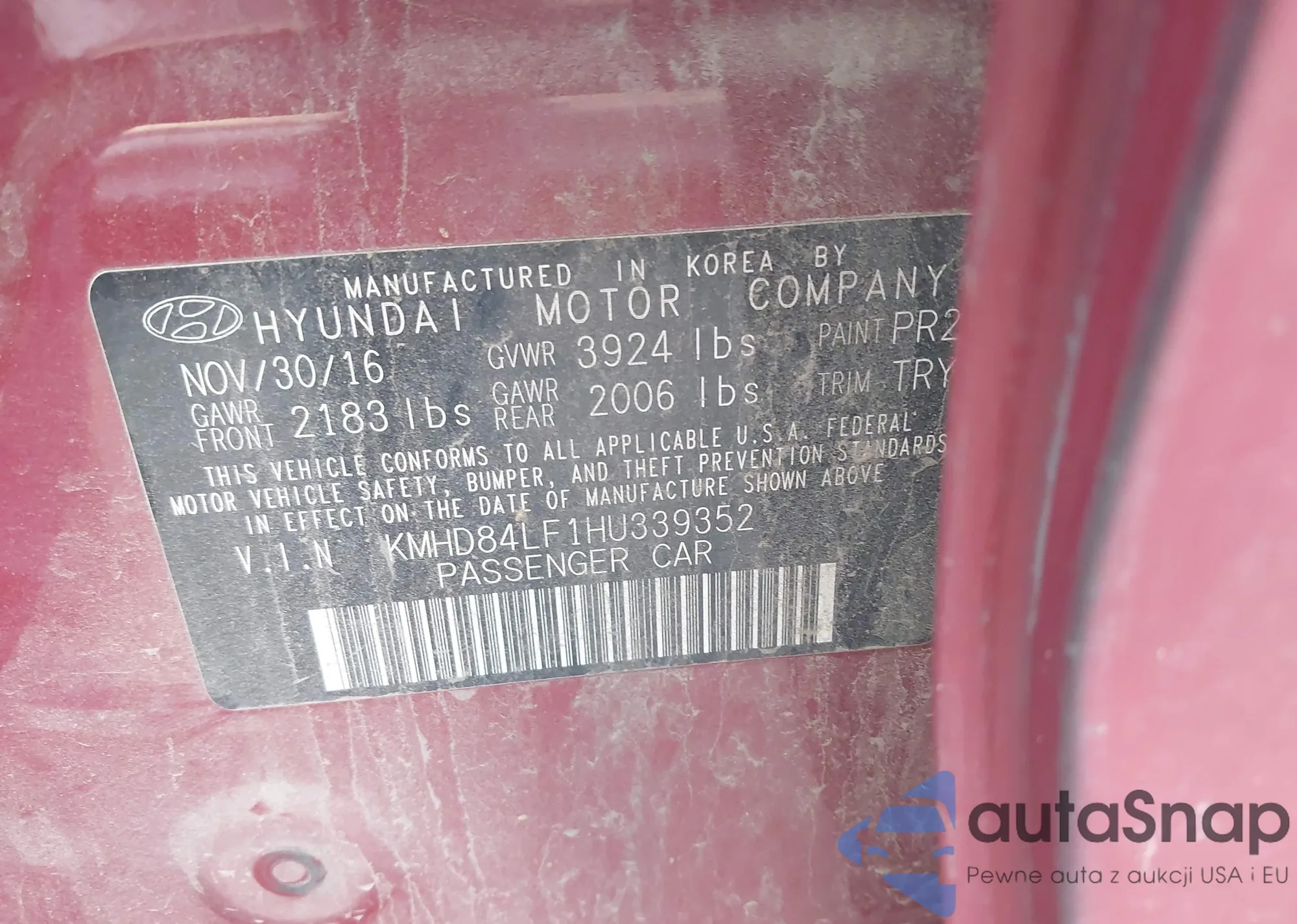 Автомобиль Hyundai Elantra 2017 (VIN KMHD84LF1HU339352) ранее не участвовал в торгах. Документы чистые, пробег соответствует или ниже среднего по рынку. Продаётся страховой компанией — рекомендуем покупку. Доставка в порт займет около 6–8 недель.