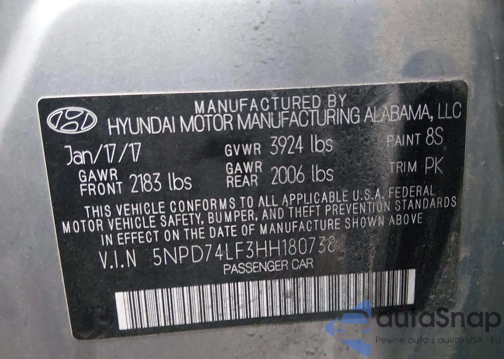 Автомобиль Hyundai Elantra 2017 (VIN 5NPD74LF3HH180738) ранее не участвовал в торгах. Документы чистые, пробег соответствует или ниже среднего по рынку. Продаётся страховой компанией — рекомендуем покупку. Доставка в порт займет около 6–8 недель.