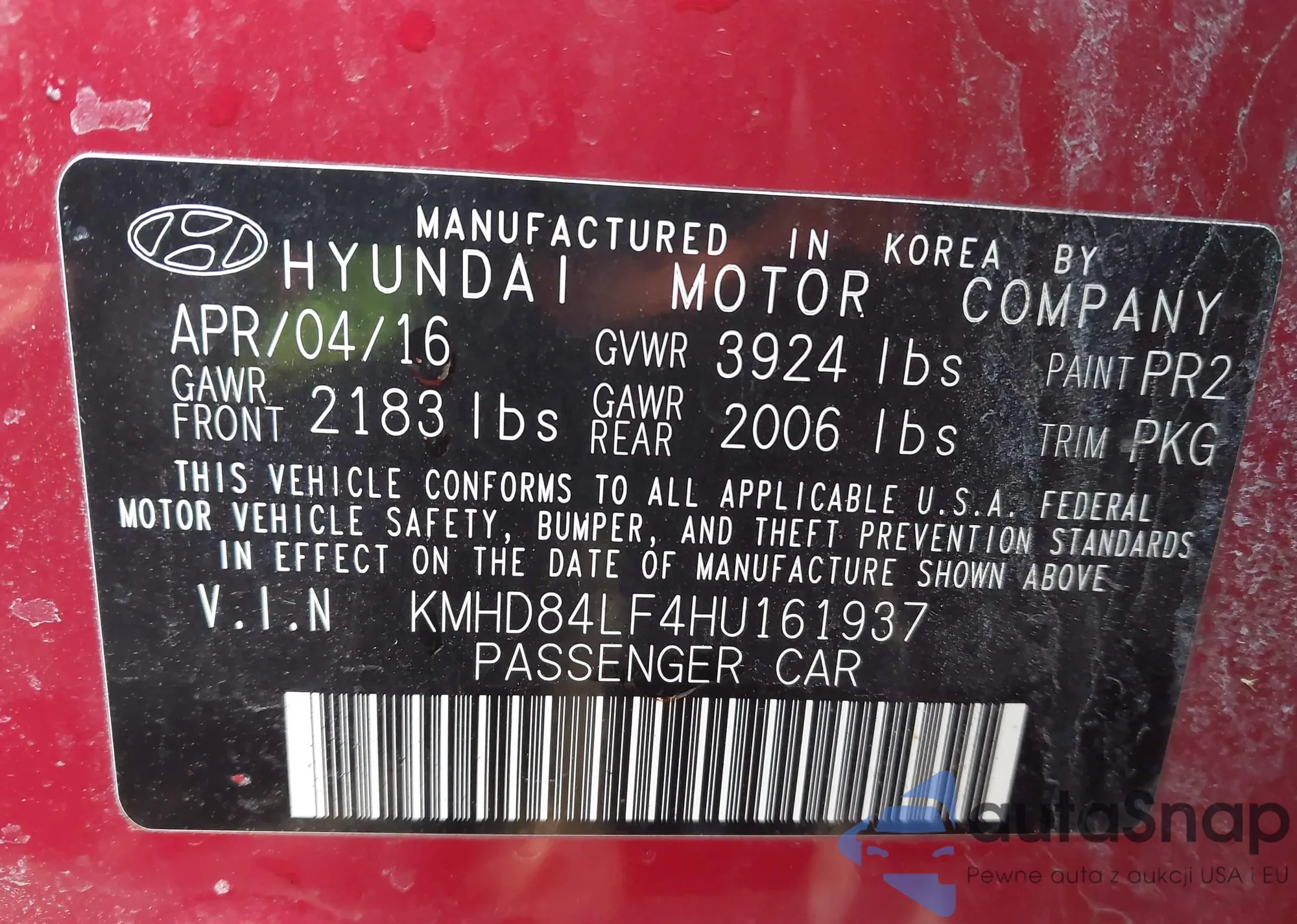 Автомобиль Hyundai Elantra 2017 (VIN KMHD84LF4HU161937) ранее не участвовал в торгах. Документы чистые, пробег соответствует или ниже среднего по рынку. Продаётся страховой компанией — рекомендуем покупку. Доставка в порт займет около 6–8 недель.