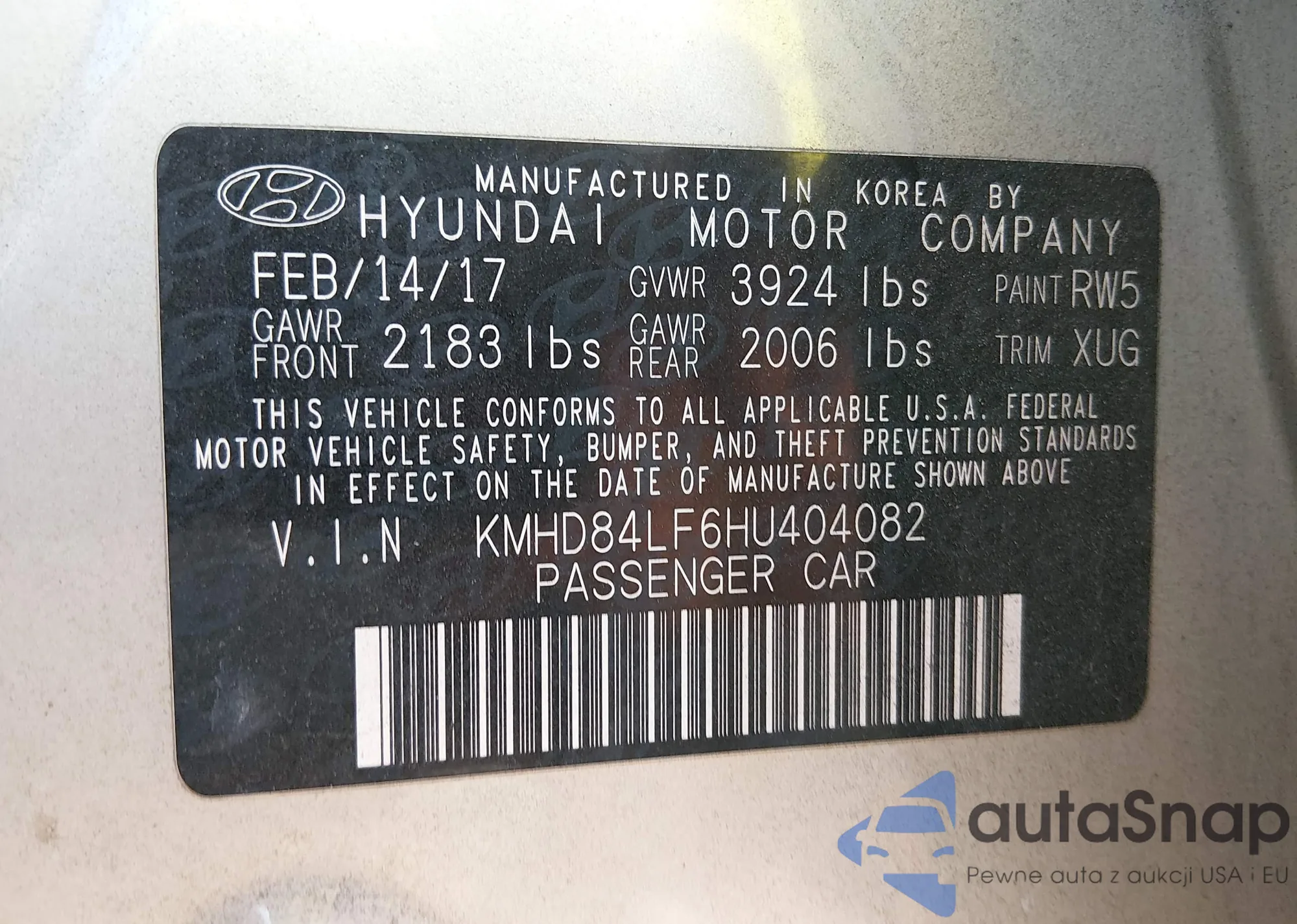 Автомобиль Hyundai Elantra 2017 (VIN KMHD84LF6HU404082) ранее не участвовал в торгах. Документы чистые, пробег соответствует или ниже среднего по рынку. Продаётся страховой компанией — рекомендуем покупку. Доставка в порт займет около 6–8 недель.