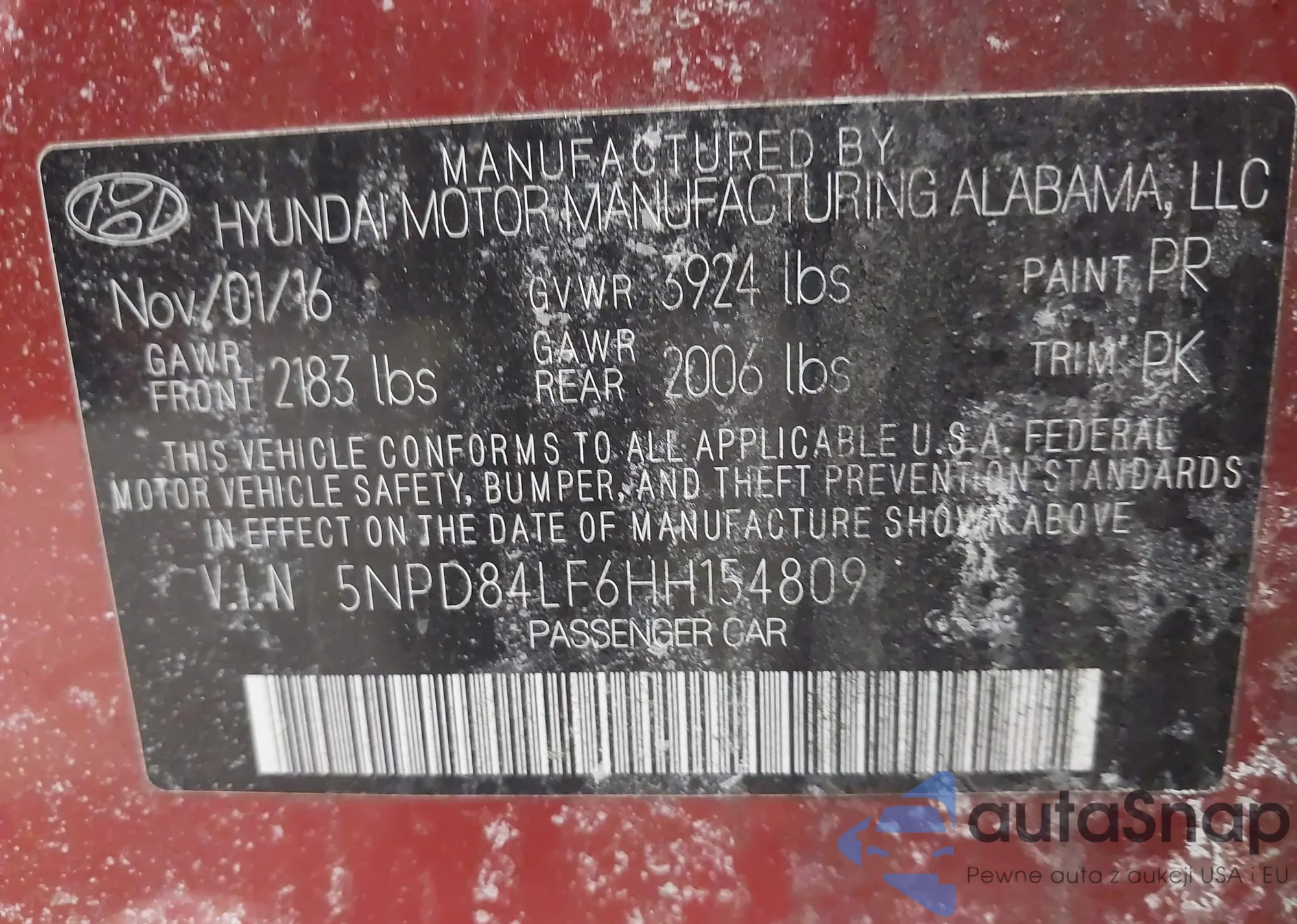 VIN: 5NPD84LF6HH154809