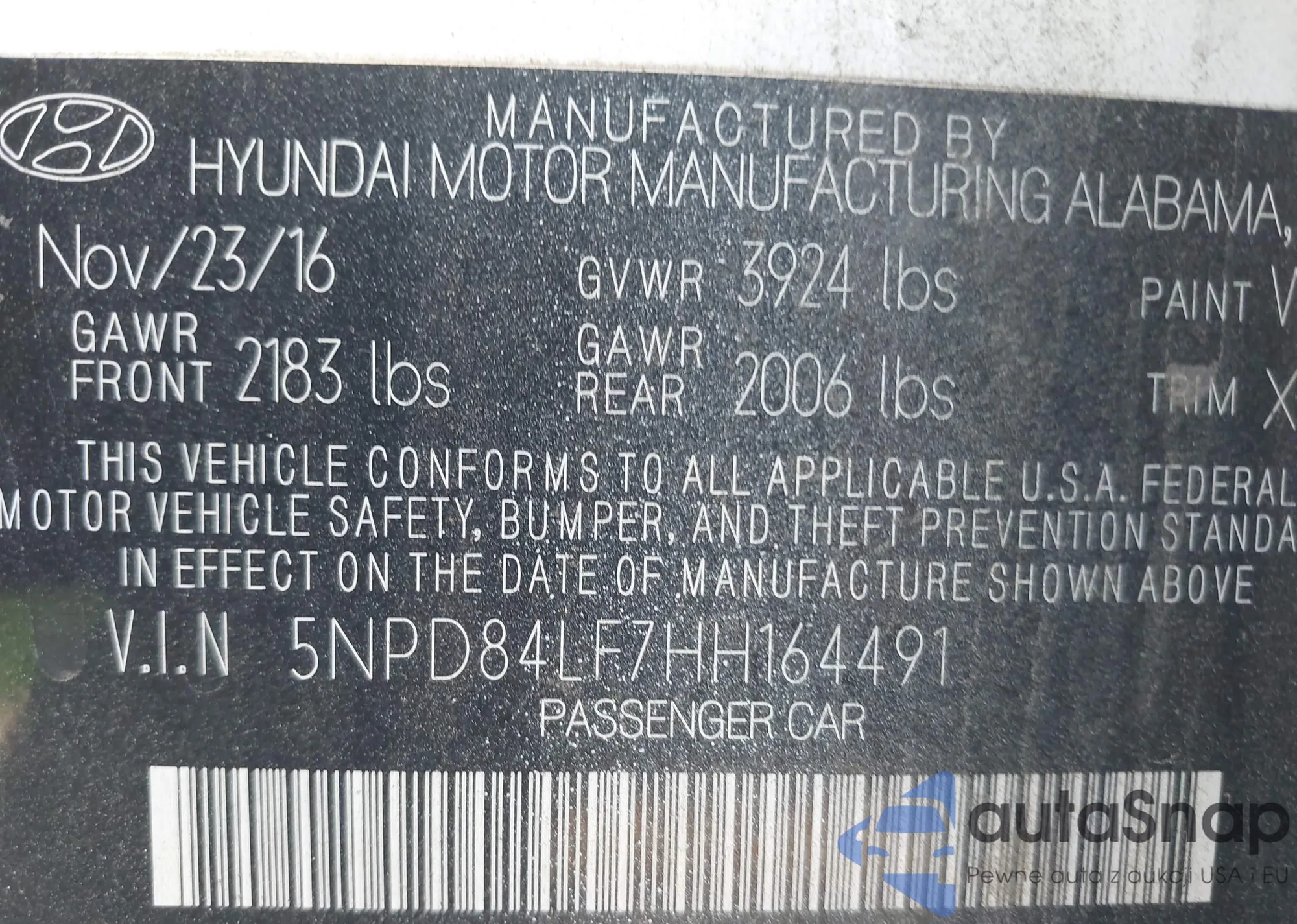 VIN: 5NPD84LF7HH164491