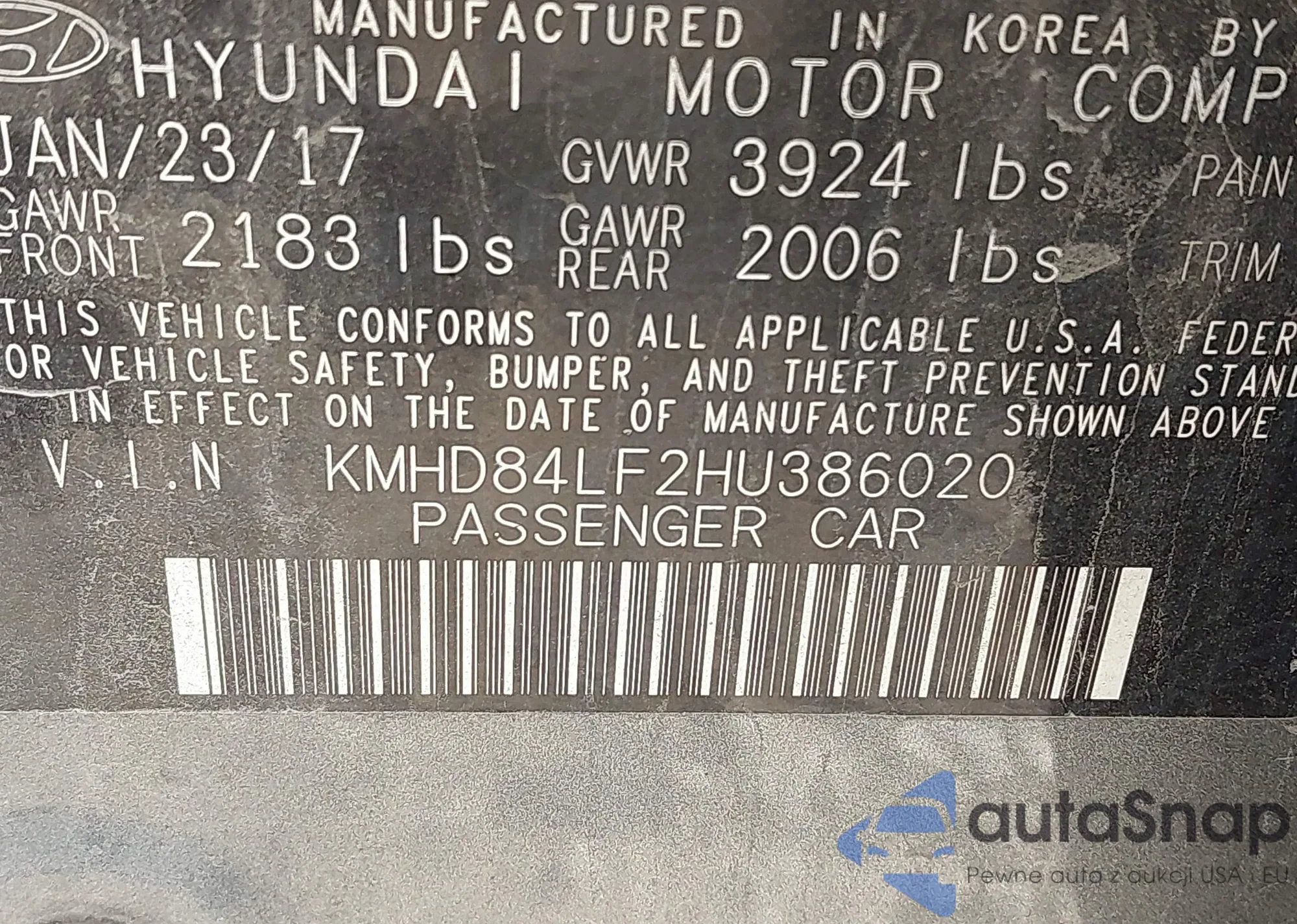 VIN: KMHD84LF2HU386020