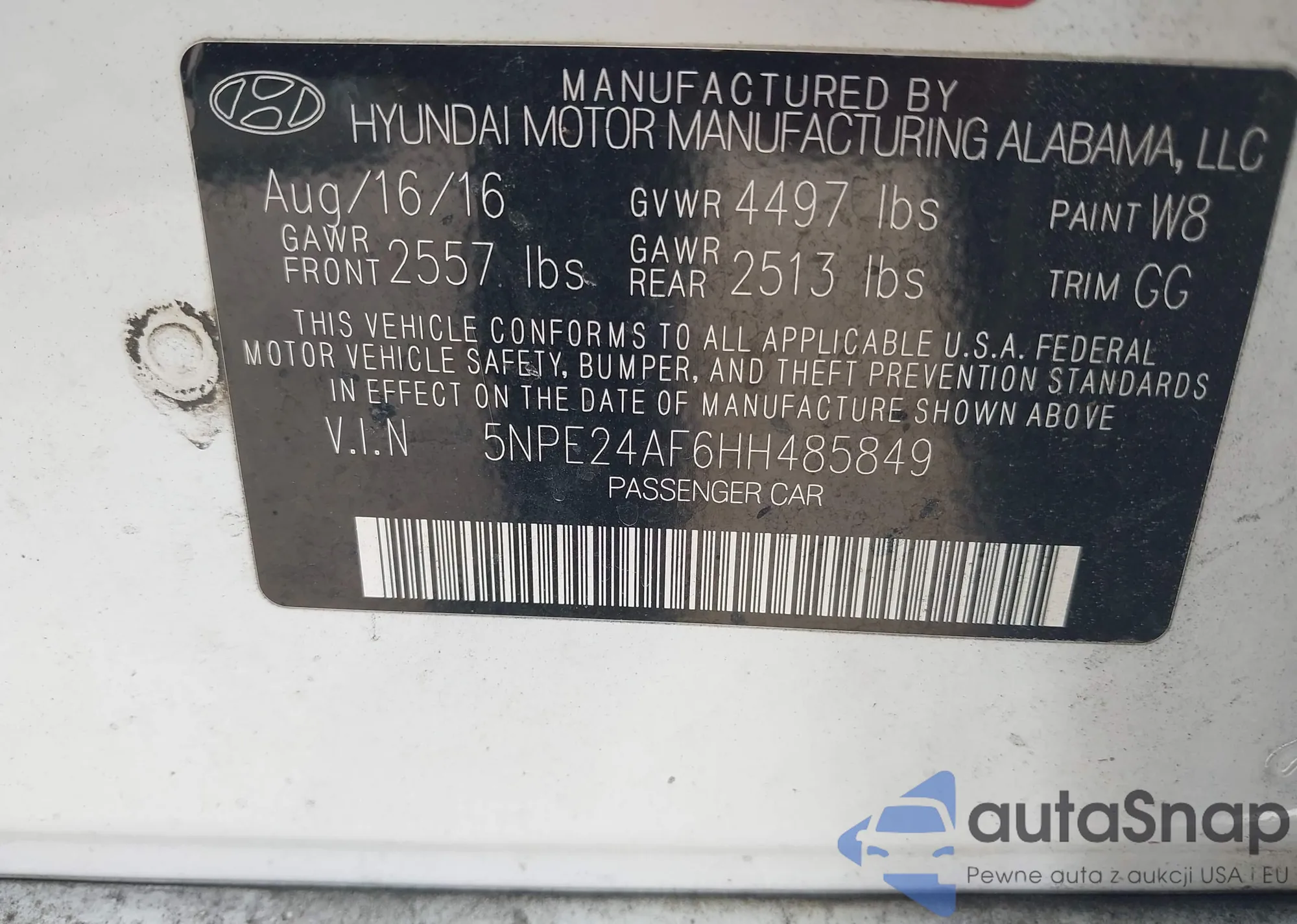 VIN: 5NPE24AF6HH485849