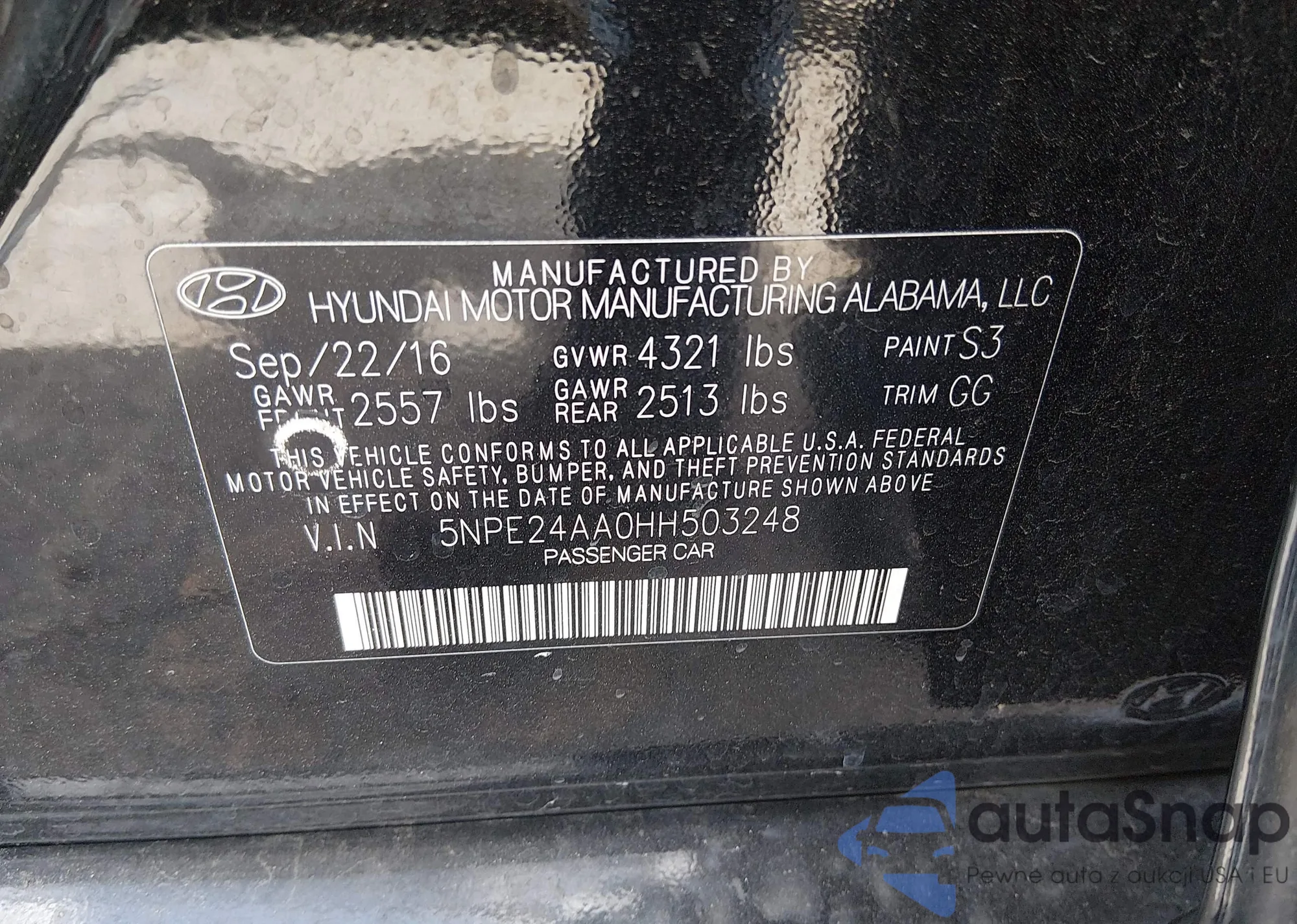 VIN: 5NPE24AA0HH503248