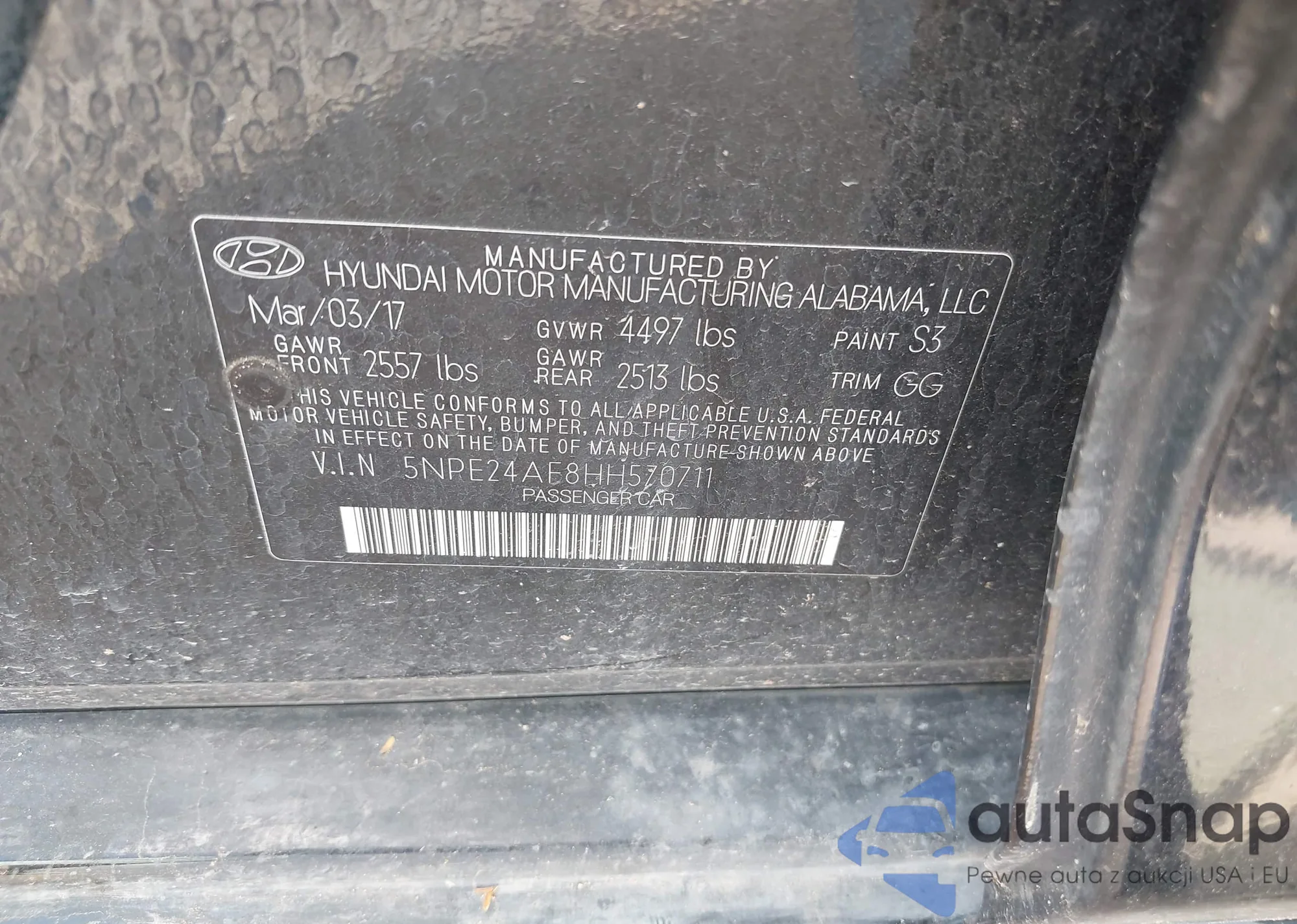 VIN: 5NPE24AF8HH570711