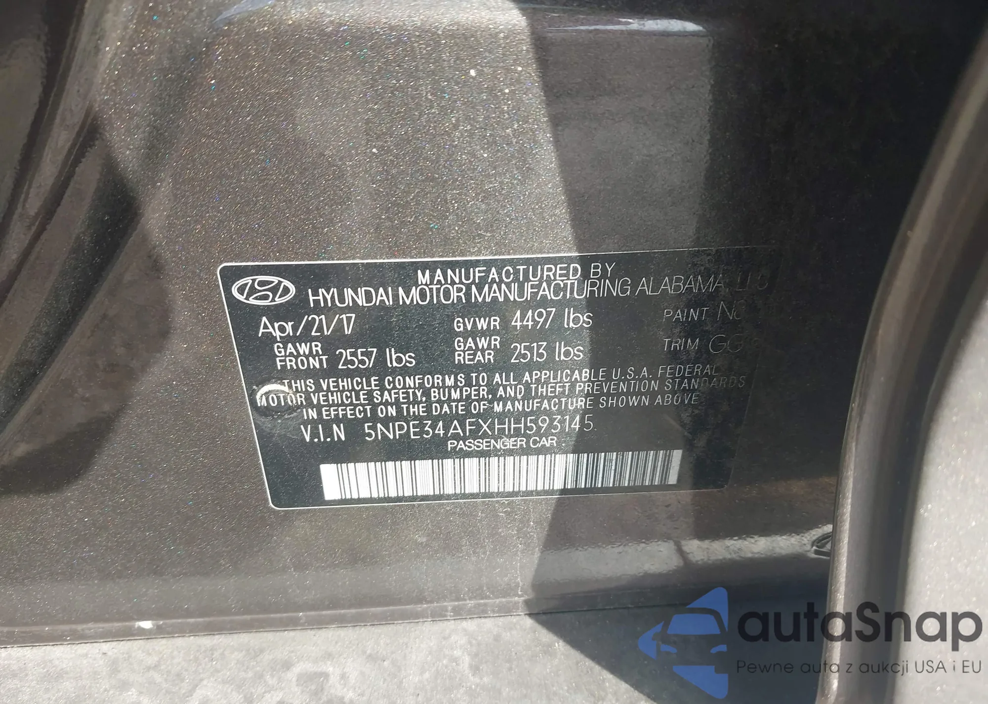 Автомобиль Hyundai Sonata 2017 (VIN 5NPE34AFXHH593145) ранее не участвовал в торгах. Документы чистые, пробег соответствует или ниже среднего по рынку. Продаётся страховой компанией — рекомендуем покупку. Доставка в порт займет около 6–8 недель.