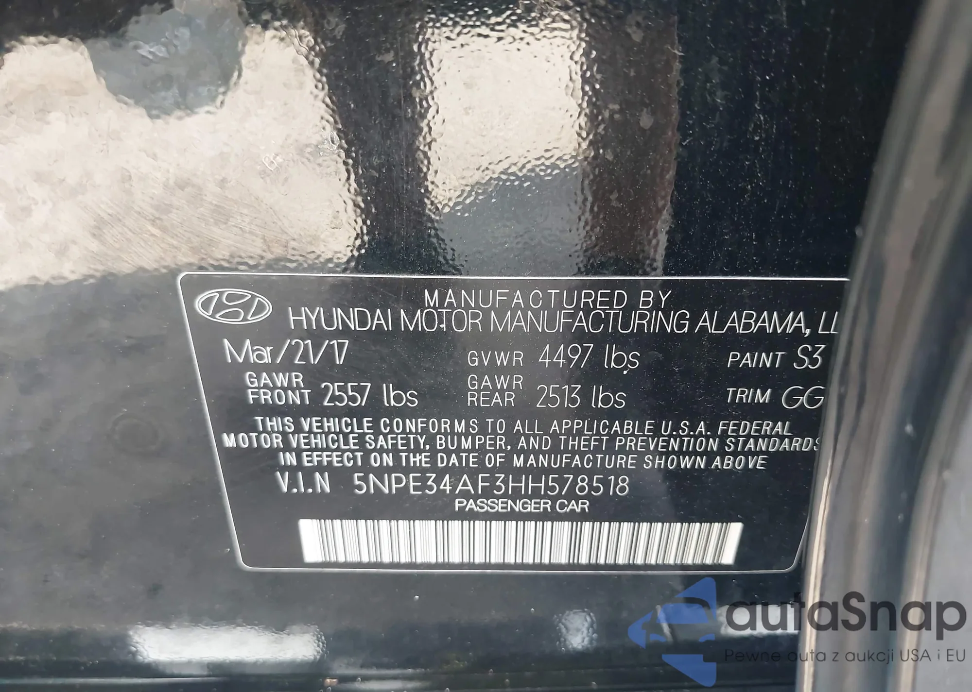 VIN: 5NPE34AF3HH578518