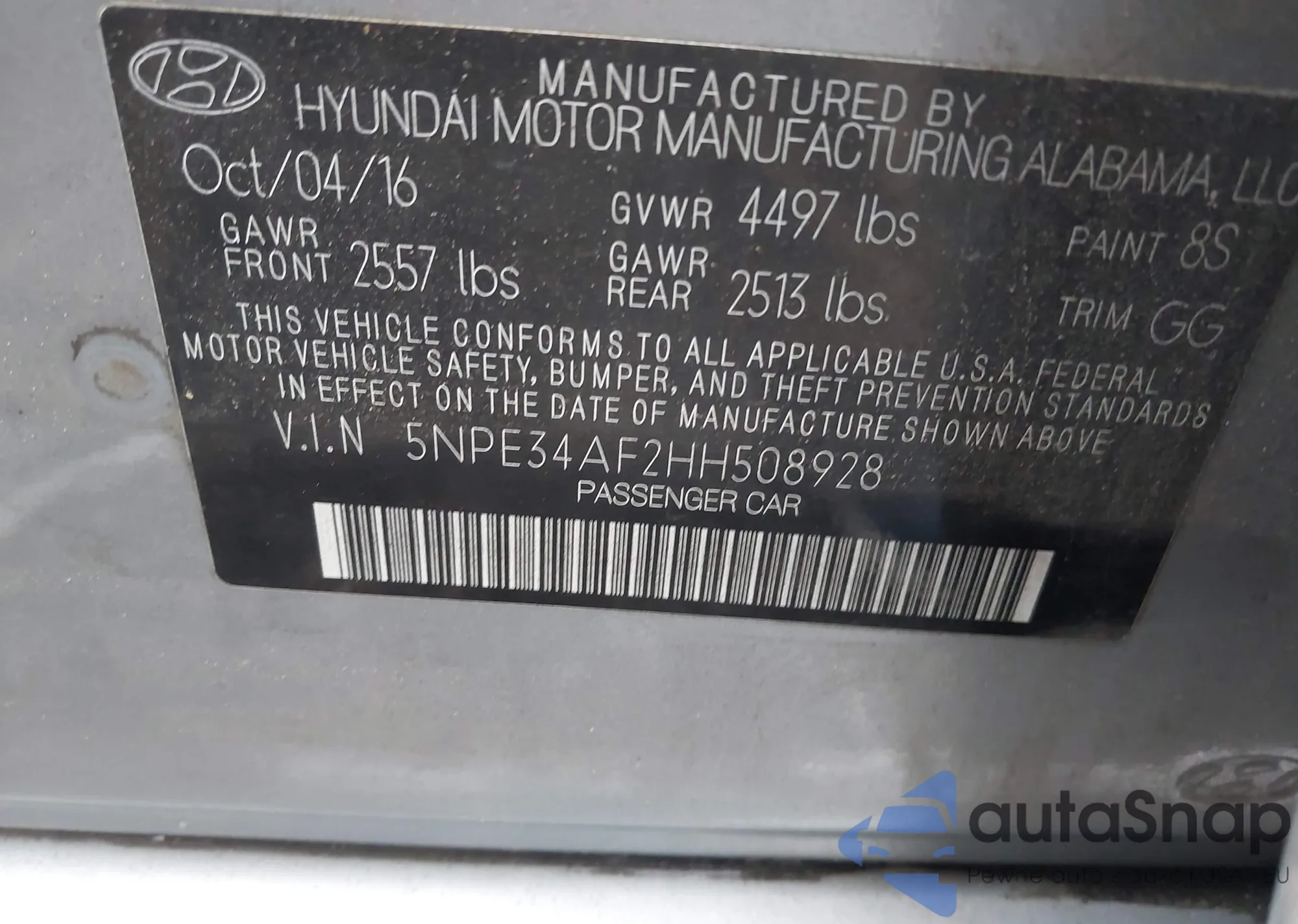 VIN: 5NPE34AF2HH508928