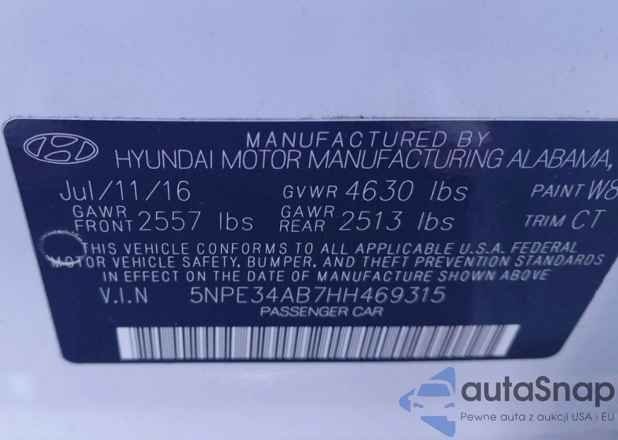 VIN: 5NPE34AB7HH469315