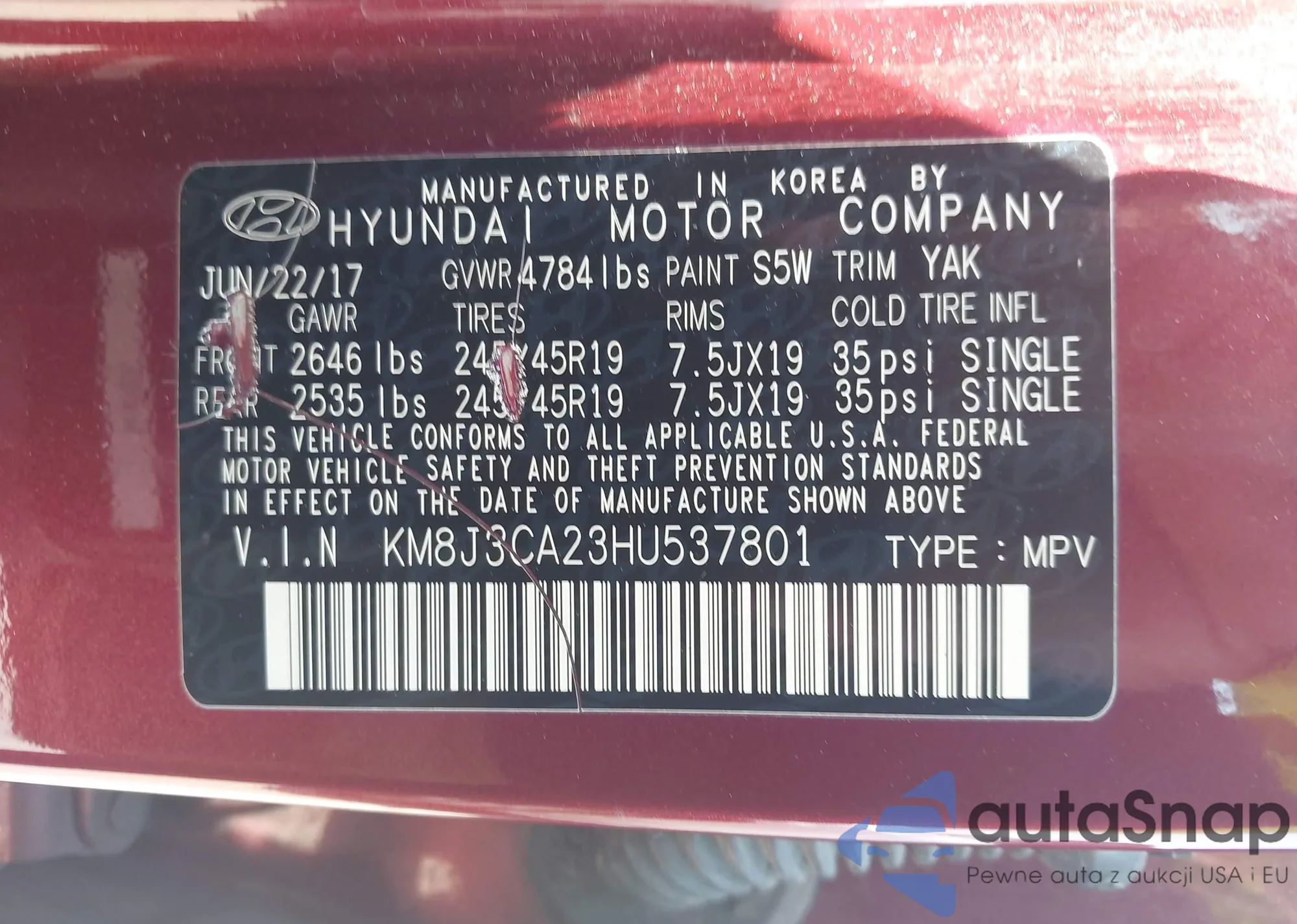 VIN: KM8J3CA23HU537801