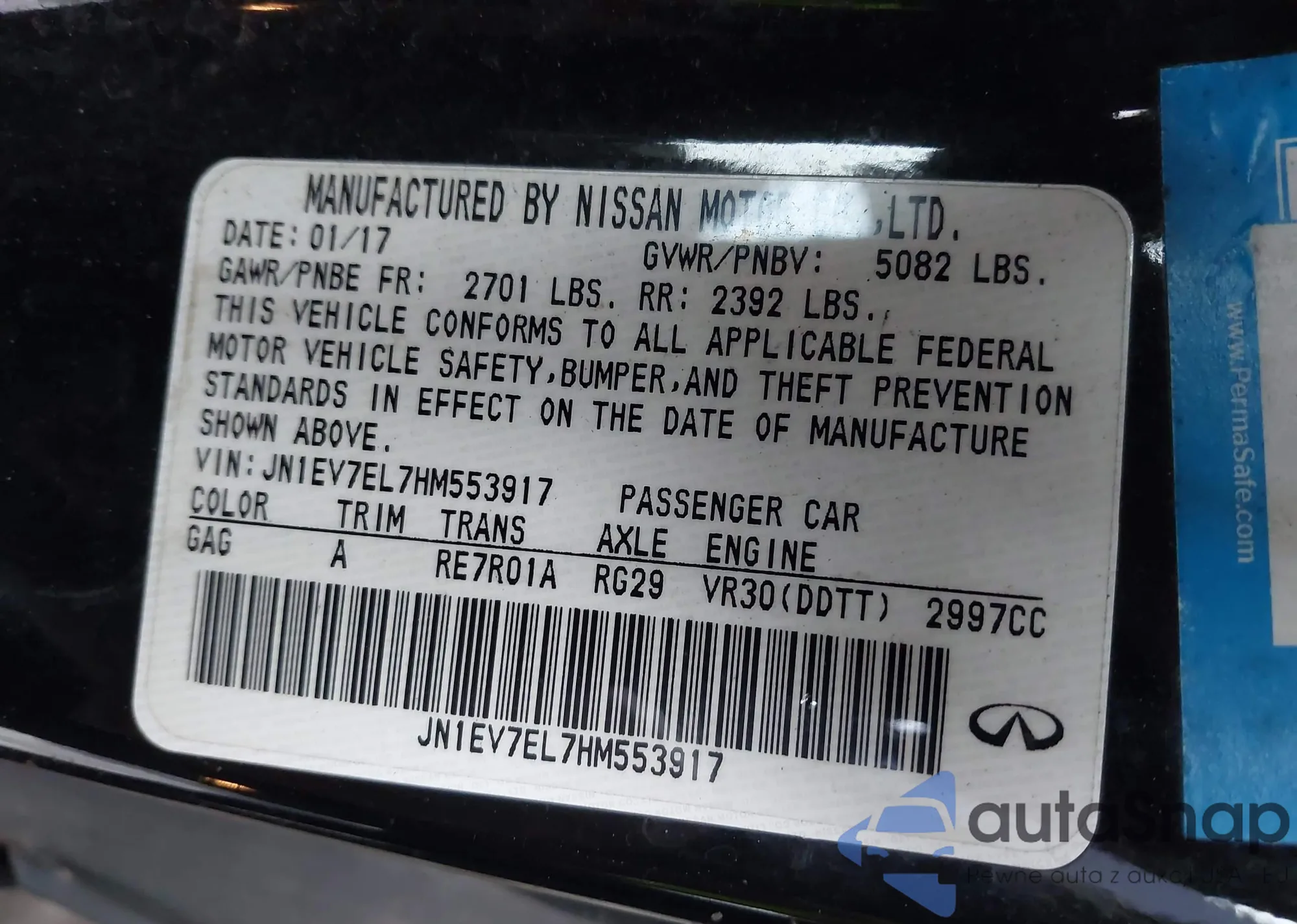 • VIN: JN1EV7EL7HM553917