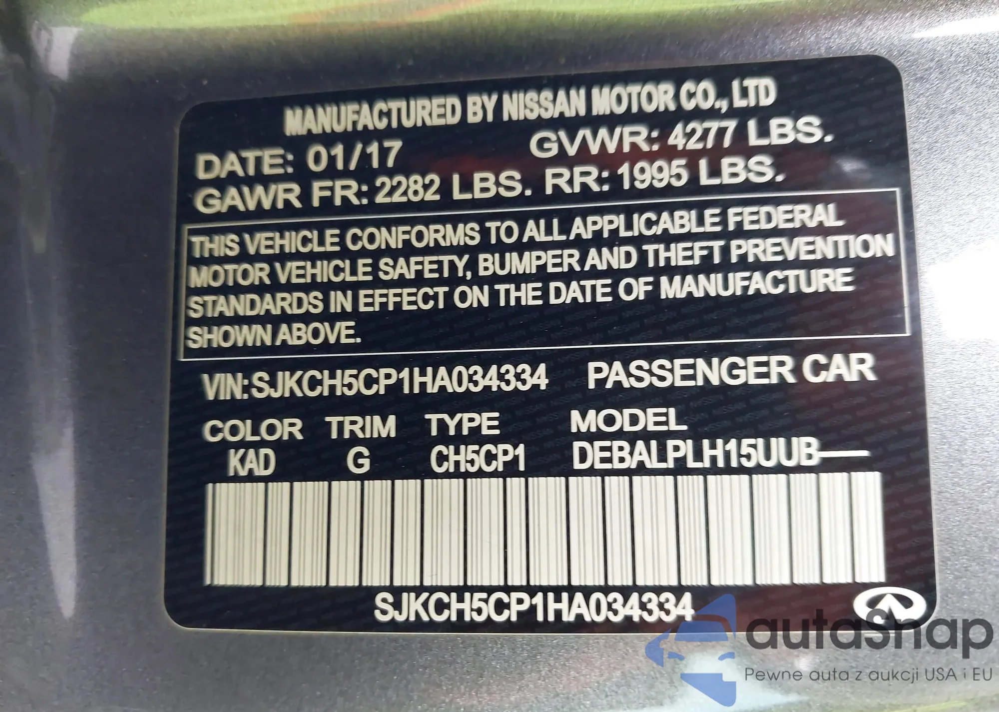 • VIN: SJKCH5CP1HA034334