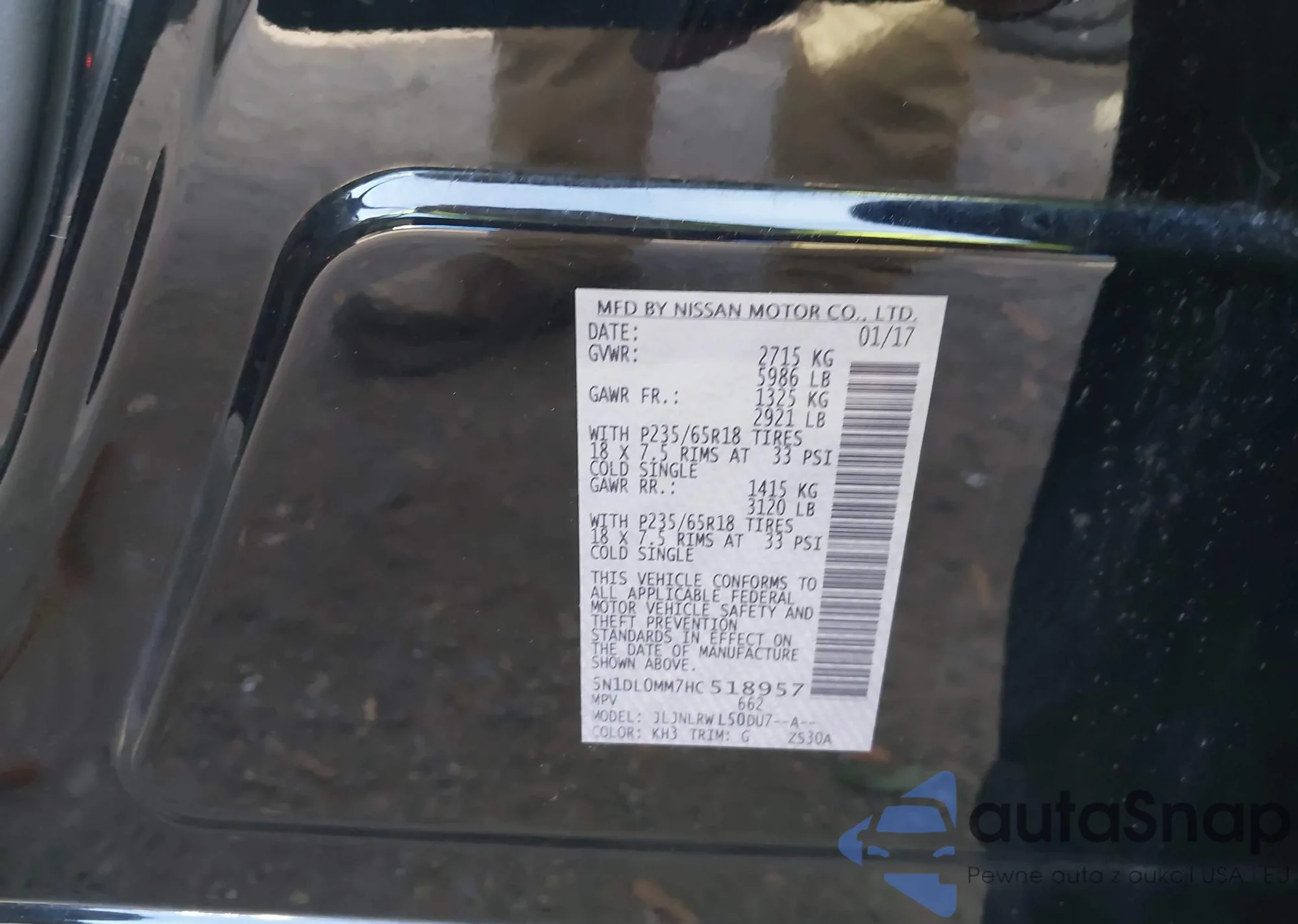 • VIN: 5N1DL0MM7HC518957