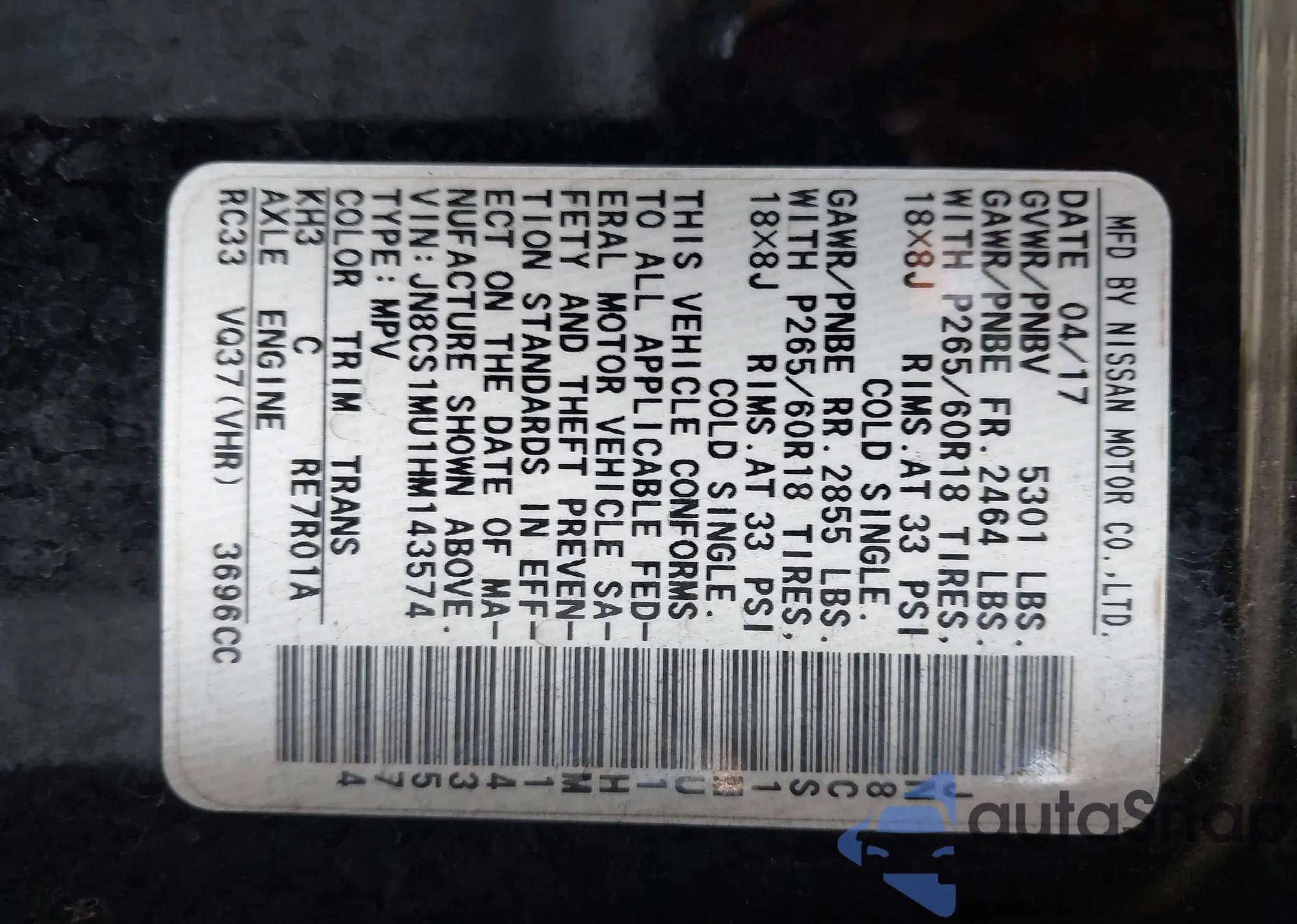 VIN: JN8CS1MU1HM143574